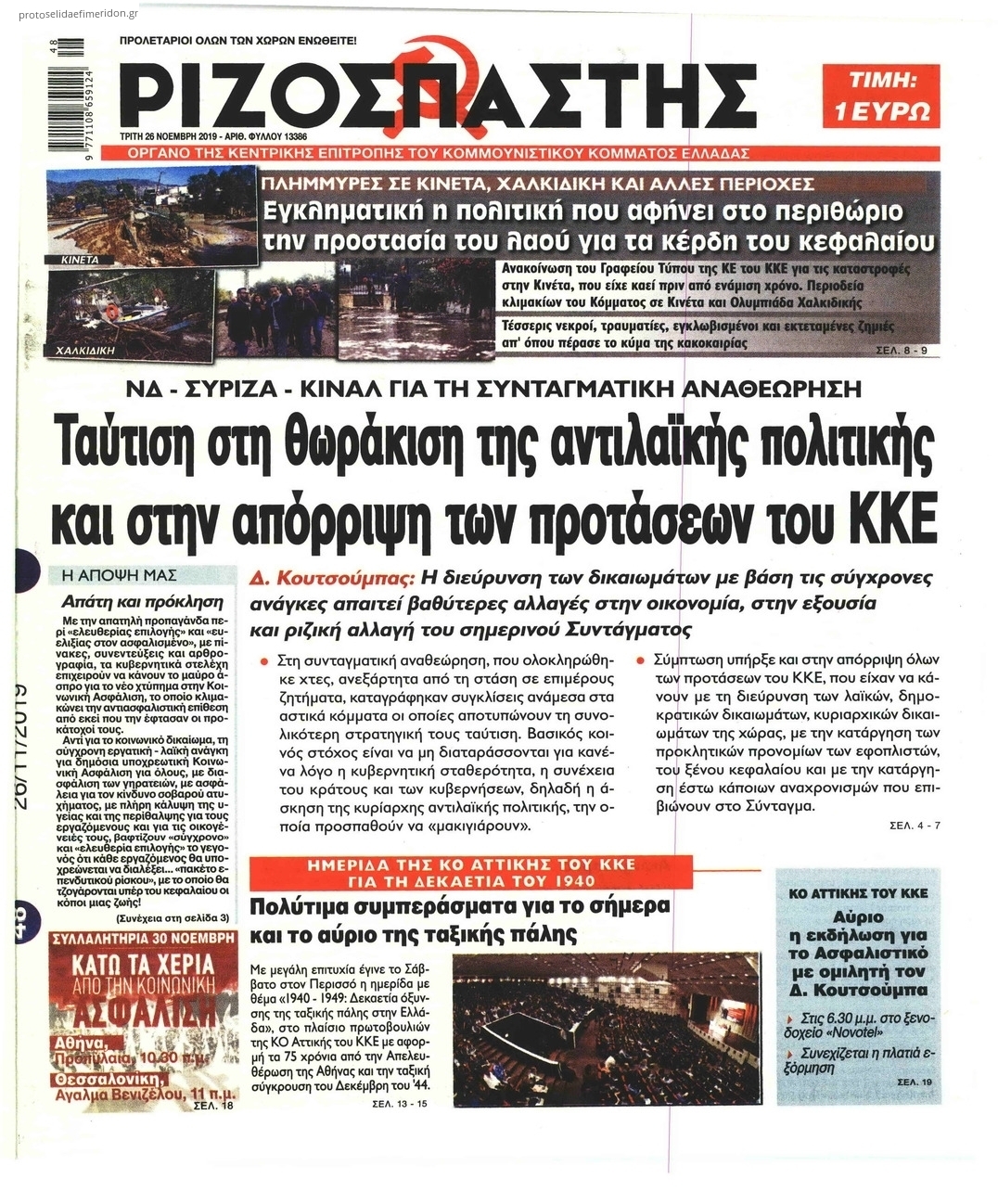 Διαβάστε όλα τα πρωτοσέλιδα των πολιτικών εφημερίδων της Τρίτης 26 Νοεμβρίου. Πλήρης ενημέρωση με μια γρήγορη ματιά!