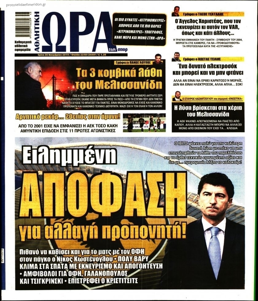 Διαβάστε όλα τα πρωτοσέλιδα των αθλητικών εφημερίδων της Τρίτης 26 Νοεμβρίου. Πλήρης ενημέρωση με μια γρήγορη ματιά!