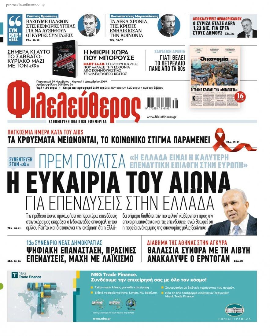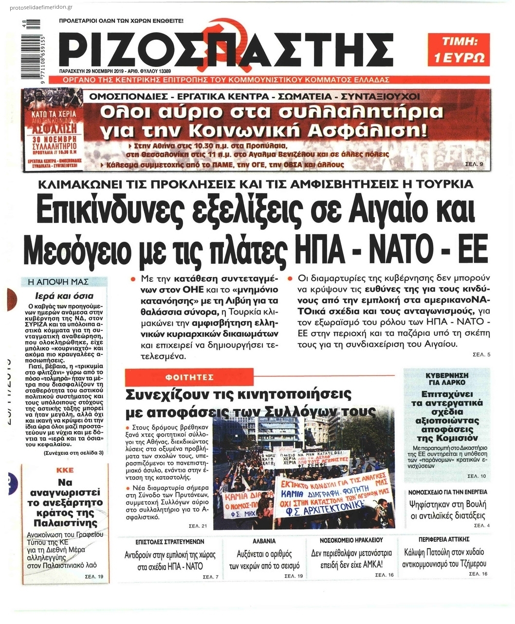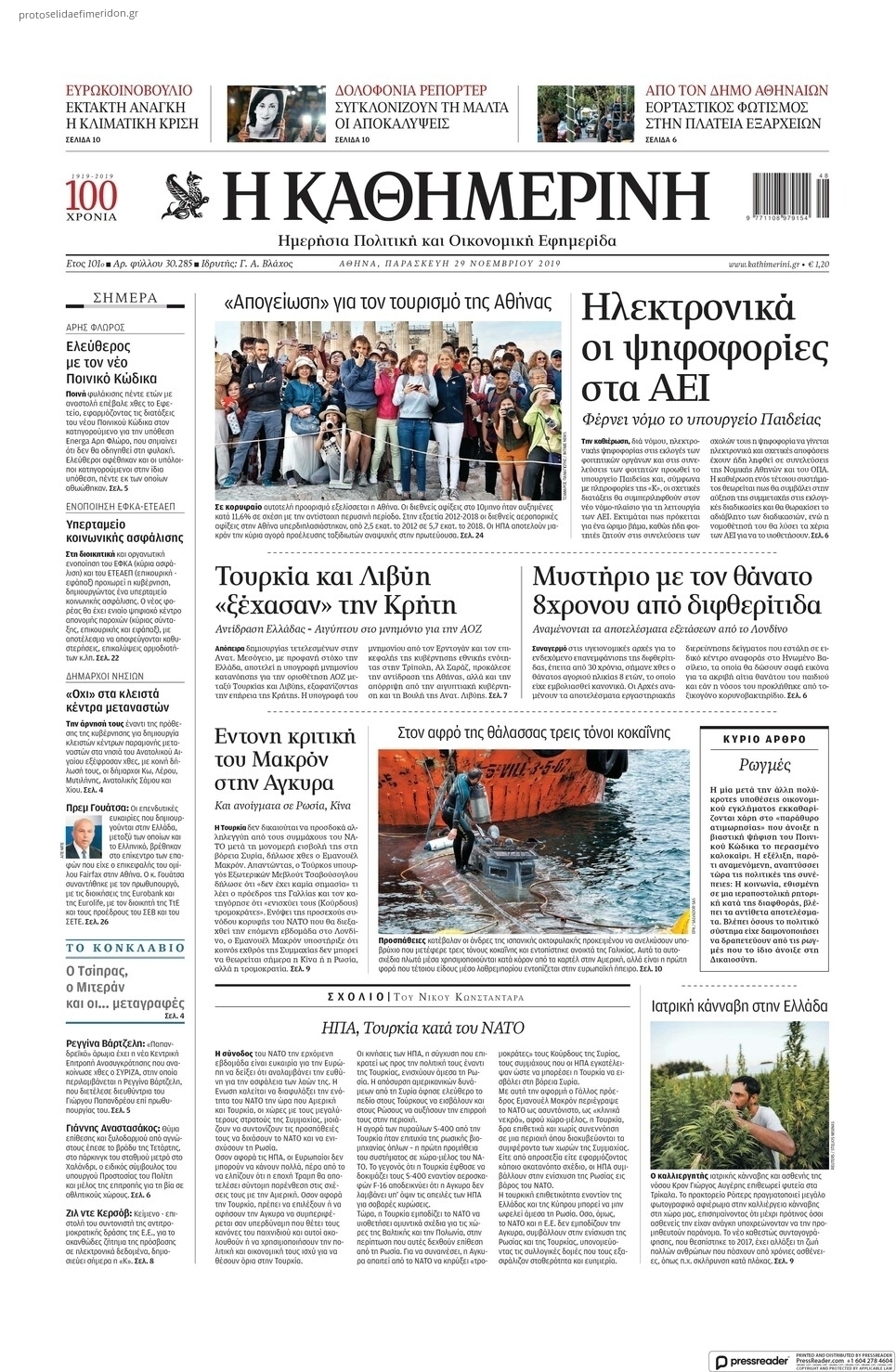 Διαβάστε όλα τα πρωτοσέλιδα των πολιτικών εφημερίδων της Παρασκευής 29 Νοεμβρίου. Πλήρης ενημέρωση με μια γρήγορη ματιά!