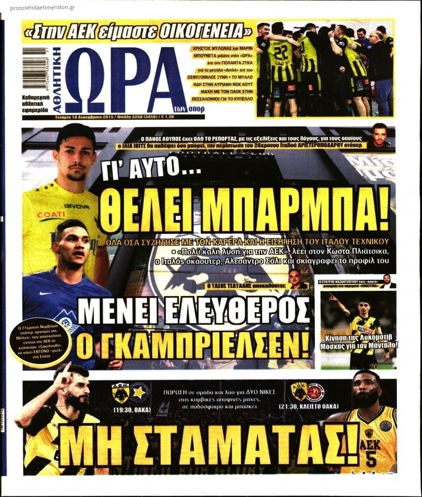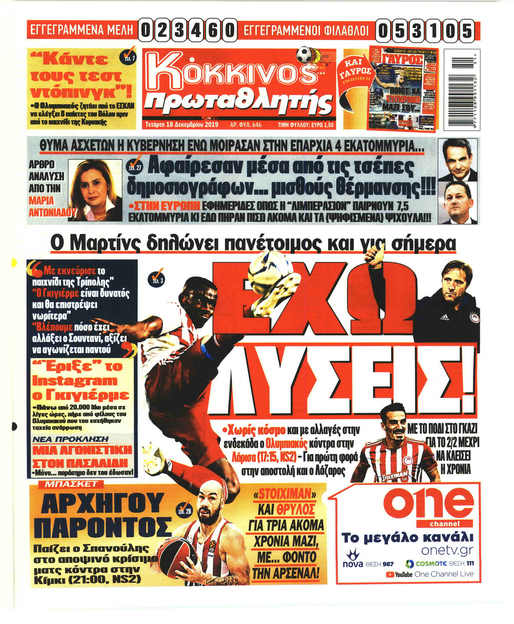 Διαβάστε όλα τα πρωτοσέλιδα των αθλητικών εφημερίδων της Τετάρτης 18 Δεκεμβρίου. Πλήρης ενημέρωση με μια γρήγορη ματιά!