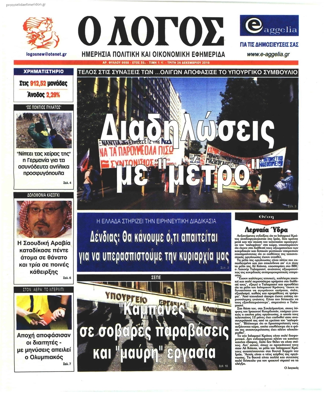 Διαβάστε όλα τα πρωτοσέλιδα των πολιτικών εφημερίδων της Τρίτης 24 Δεκεμβρίου. Πλήρης ενημέρωση με μια γρήγορη ματιά!