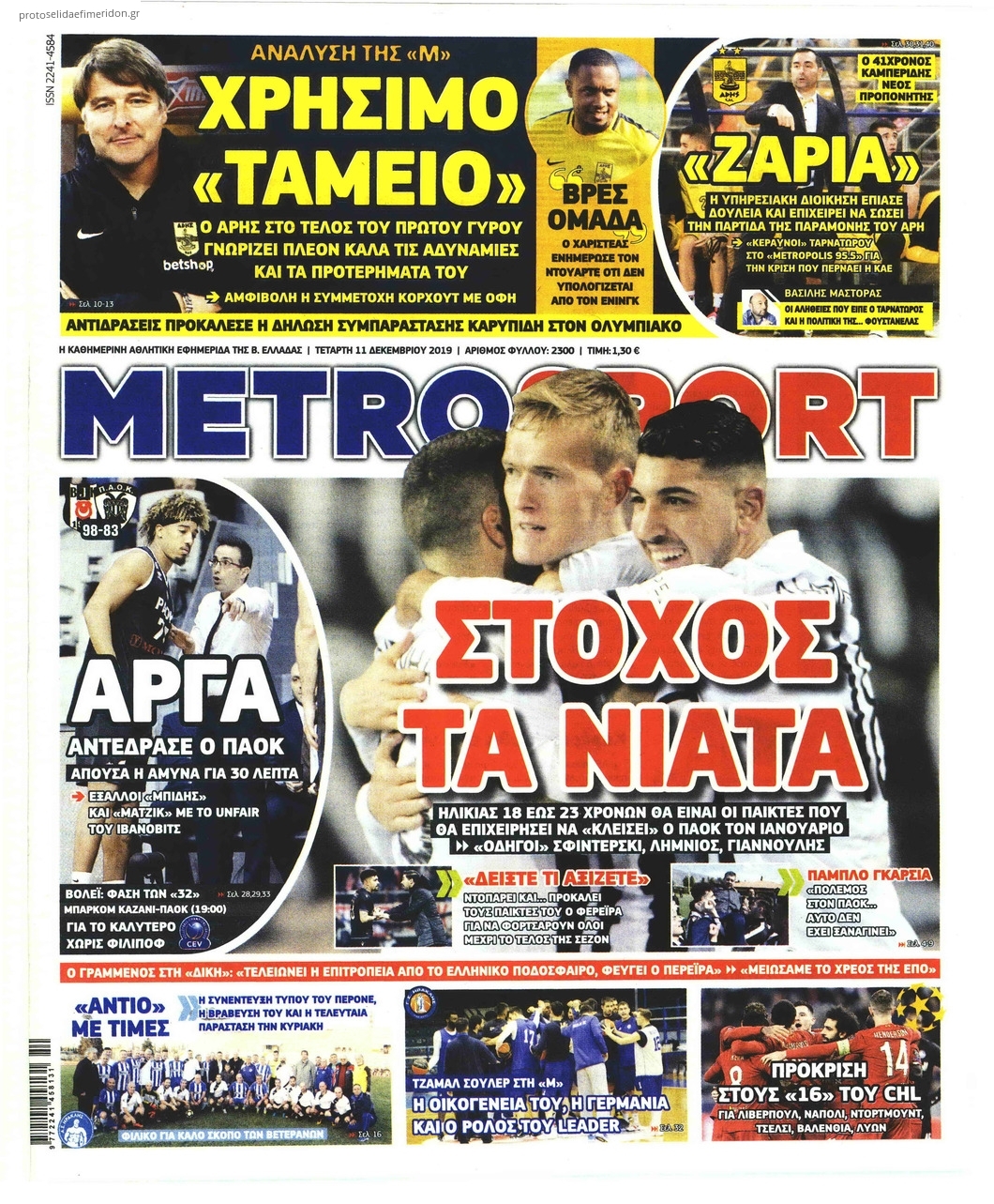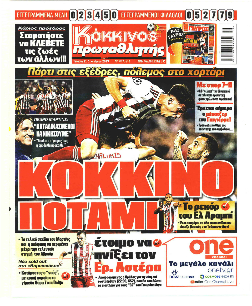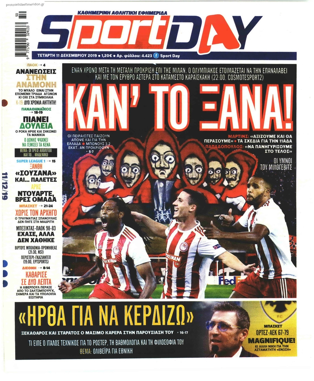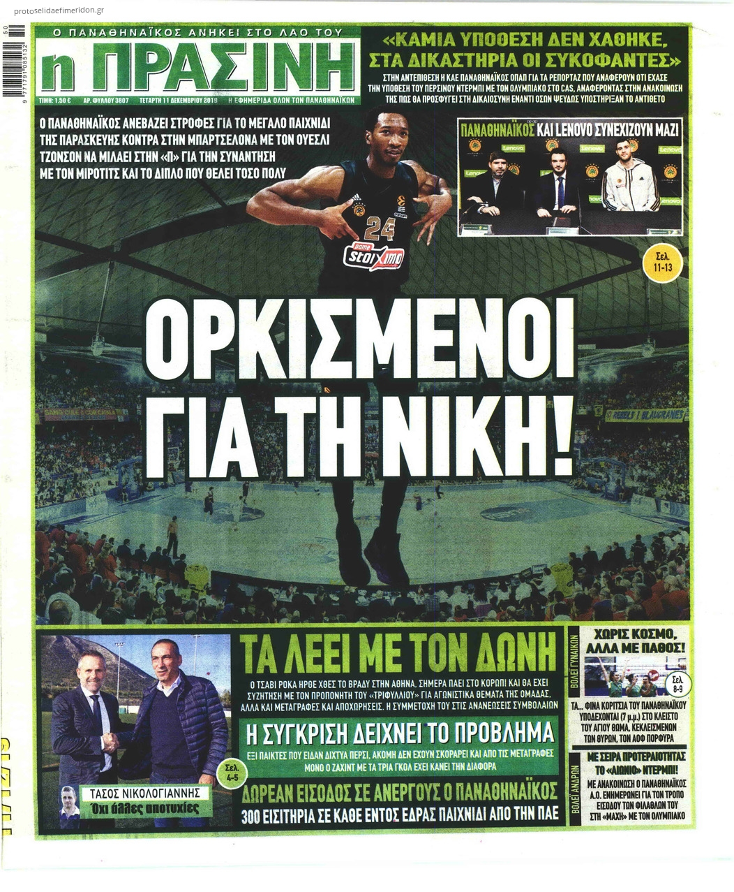 Διαβάστε όλα τα πρωτοσέλιδα των αθλητικών εφημερίδων της Τετάρτης 11 Δεκεμβρίου. Πλήρης ενημέρωση με μια γρήγορη ματιά!