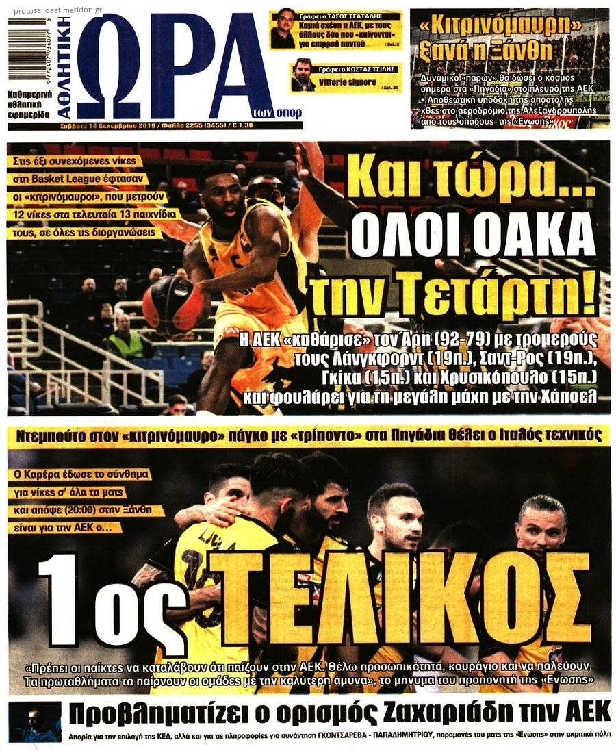 Διαβάστε όλα τα πρωτοσέλιδα των αθλητικών εφημερίδων του Σαββάτου 14 Δεκεμβρίου. Πλήρης ενημέρωση με μια γρήγορη ματιά!