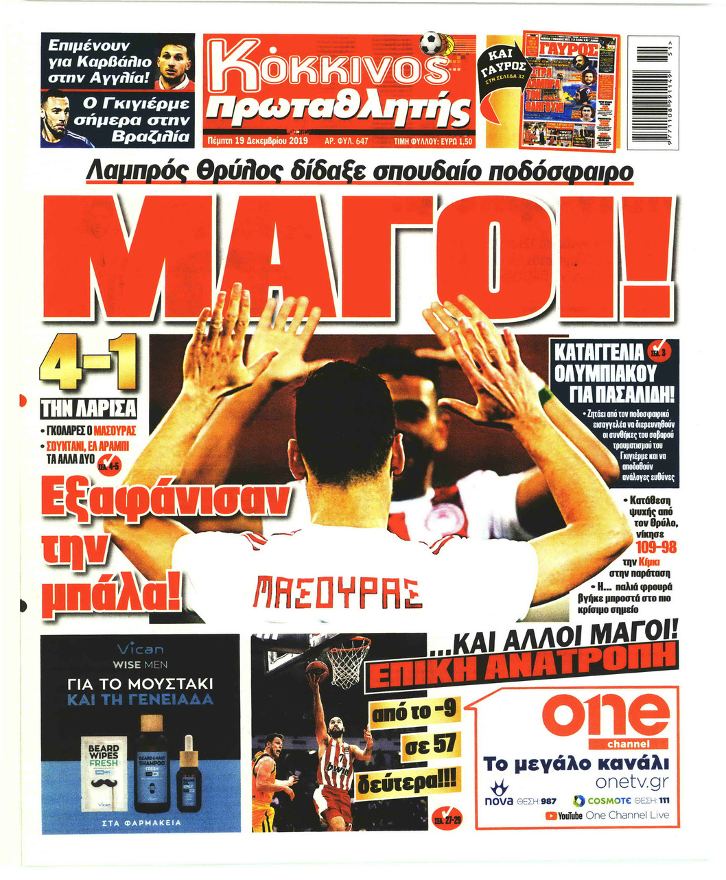 Διαβάστε όλα τα πρωτοσέλιδα των αθλητικών εφημερίδων της Πέμπτης 19 Δεκεμβρίου. Πλήρης ενημέρωση με μια γρήγορη ματιά!