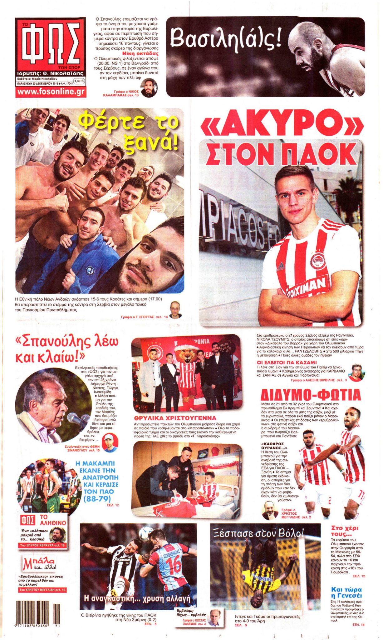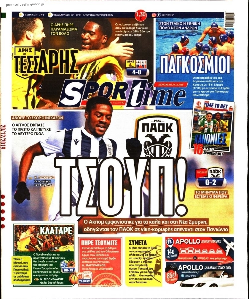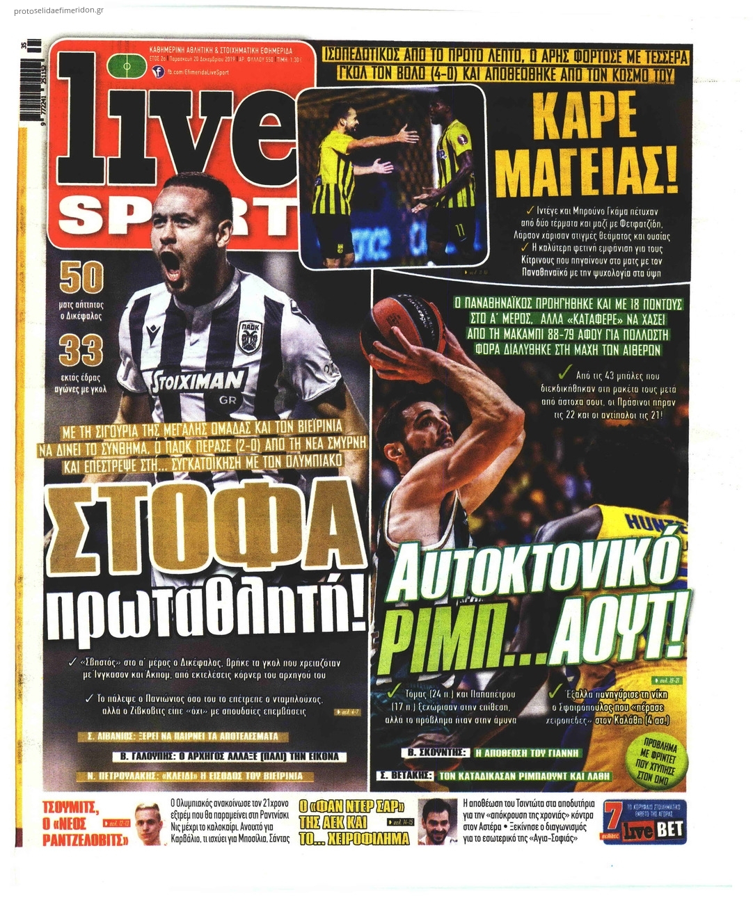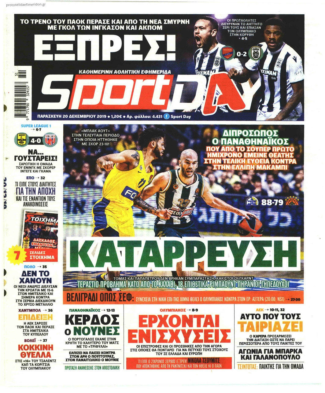 Διαβάστε όλα τα πρωτοσέλιδα των αθλητικών εφημερίδων της Παρασκευής 20 Δεκεμβρίου. Πλήρης ενημέρωση με μια γρήγορη ματιά!