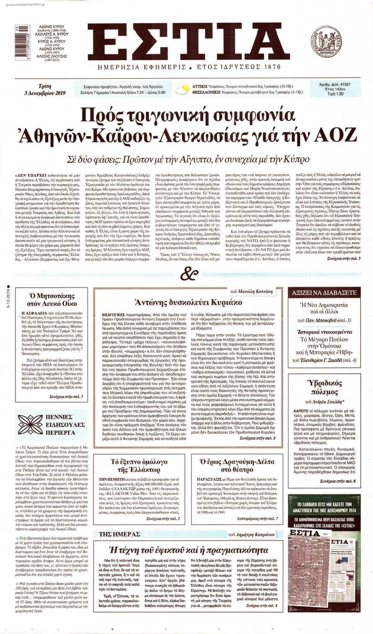 Διαβάστε όλα τα πρωτοσέλιδα των πολιτικών εφημερίδων της Τρίτης 3 Δεκεμβρίου. Πλήρης ενημέρωση με μια γρήγορη ματιά!