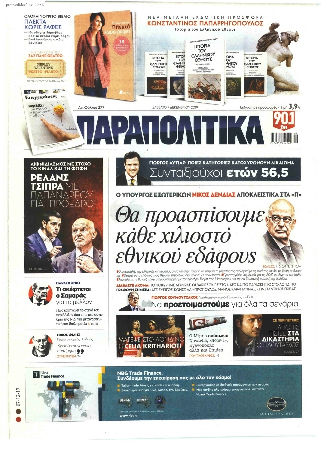 NewsMEDIASLIDER Διαβάστε όλα τα πρωτοσέλιδα των πολιτικών εφημερίδων του Σαββάτου 7 Δεκεμβρίου 2019 FacebookTwitterEmailViberWhatsAppCopy URLΤυπώνω Διαβάστε όλα τα πρωτοσέλιδα των πολιτικών εφημερίδων του Σαββάτου 7 Δεκεμβρίου. Πλήρης ενημέρωση με μια γρήγορη ματιά!