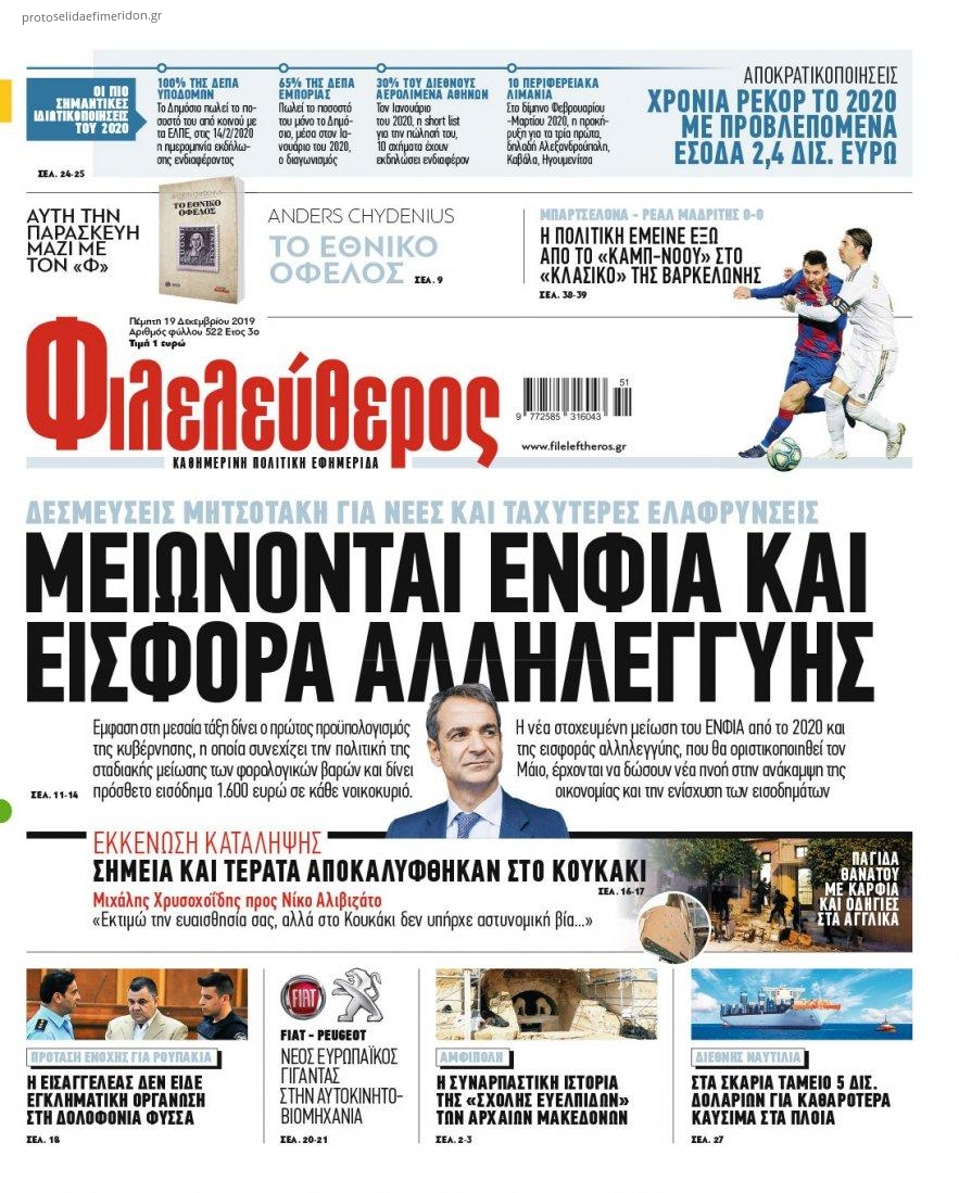 NewsMEDIASLIDER Διαβάστε όλα τα πρωτοσέλιδα των πολιτικών εφημερίδων της Πέμπτης 19 Δεκεμβρίου 2019 FacebookXEmailViberWhatsAppCopy URLΤυπώνω Διαβάστε όλα τα πρωτοσέλιδα των πολιτικών εφημερίδων της Πέμπτης 19 Δεκεμβρίου. Πλήρης ενημέρωση με μια γρήγορη ματιά!