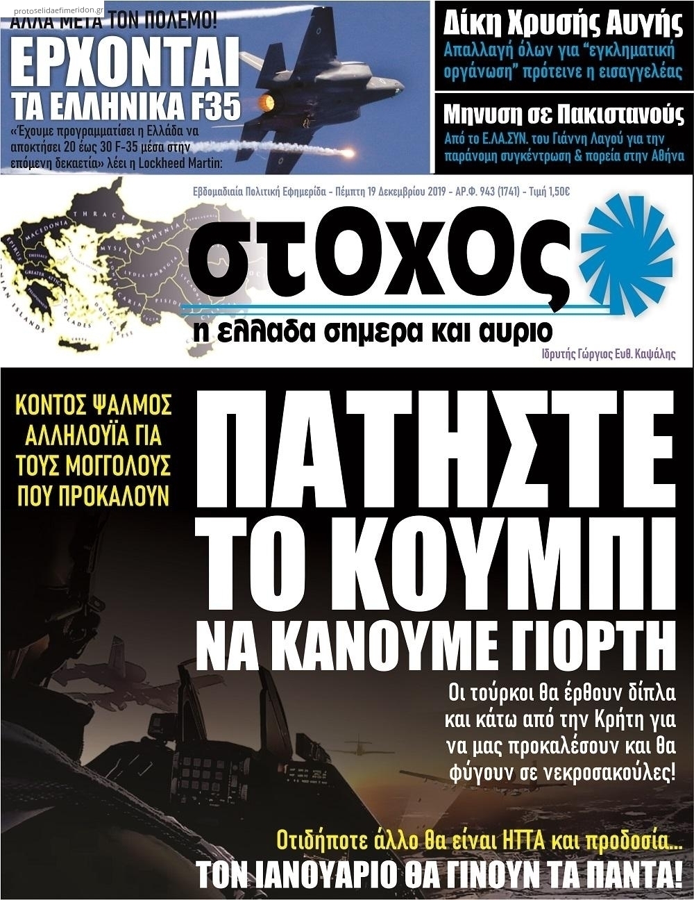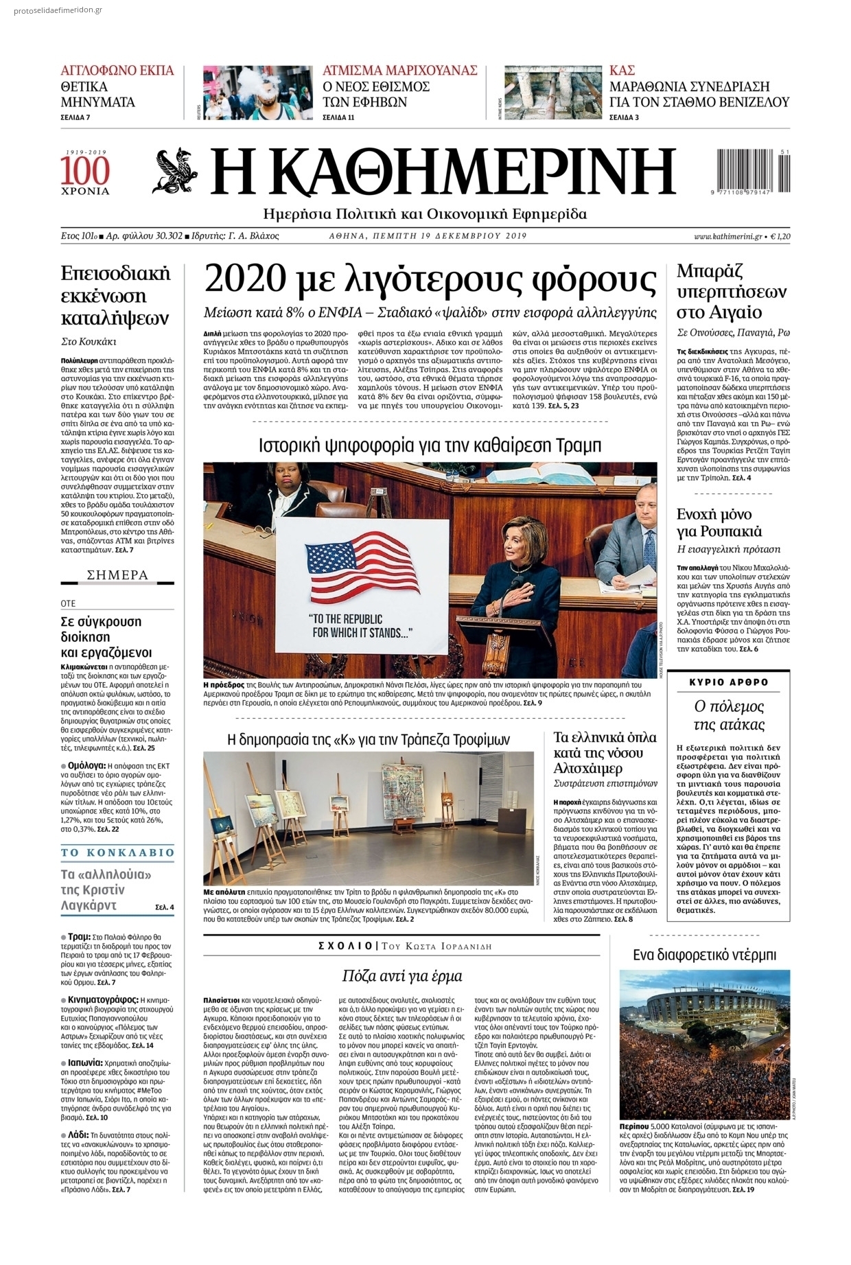 NewsMEDIASLIDER Διαβάστε όλα τα πρωτοσέλιδα των πολιτικών εφημερίδων της Πέμπτης 19 Δεκεμβρίου 2019 FacebookTwitterEmailViberWhatsAppCopy URLΤυπώνω Διαβάστε όλα τα πρωτοσέλιδα των πολιτικών εφημερίδων της Πέμπτης 19 Δεκεμβρίου. Πλήρης ενημέρωση με μια γρήγορη ματιά!