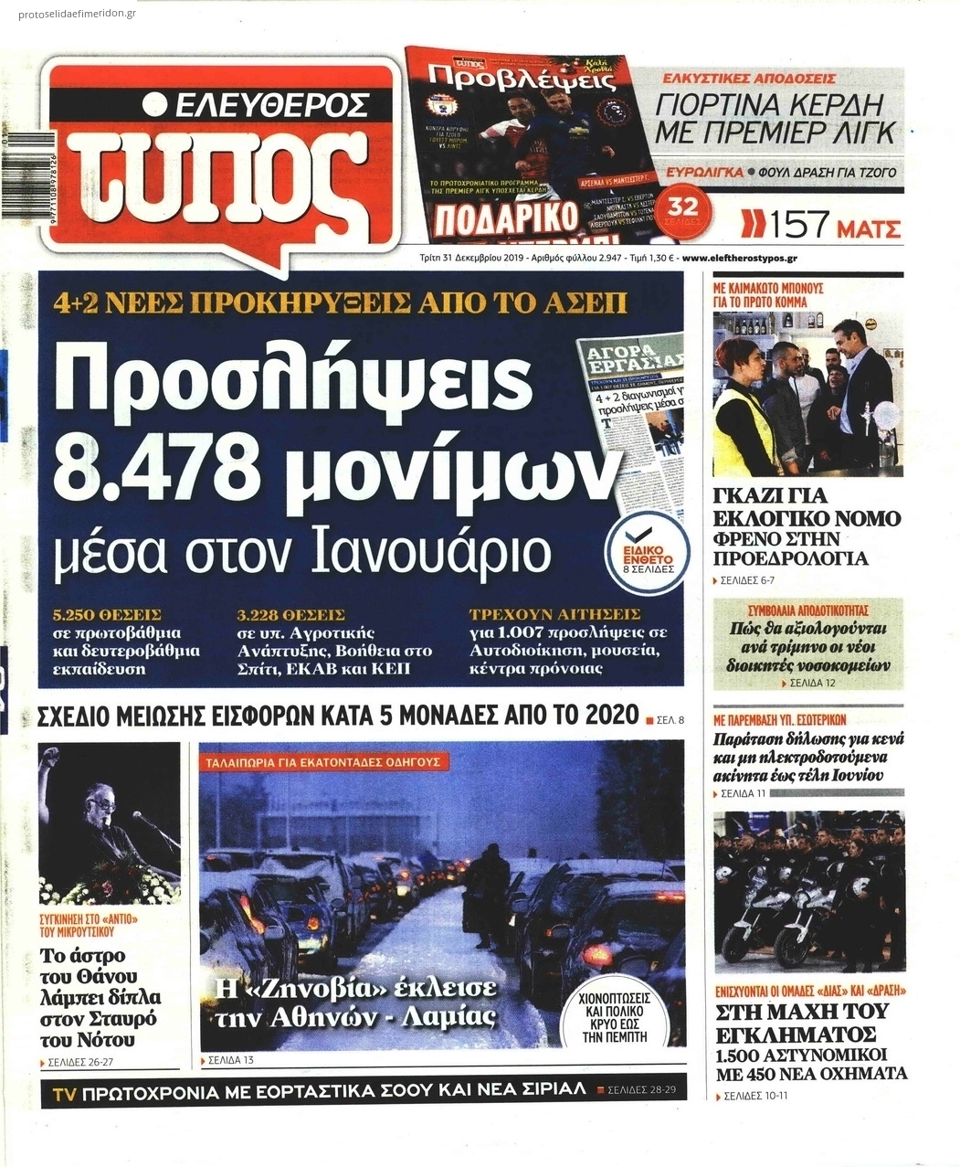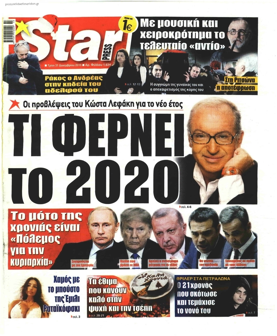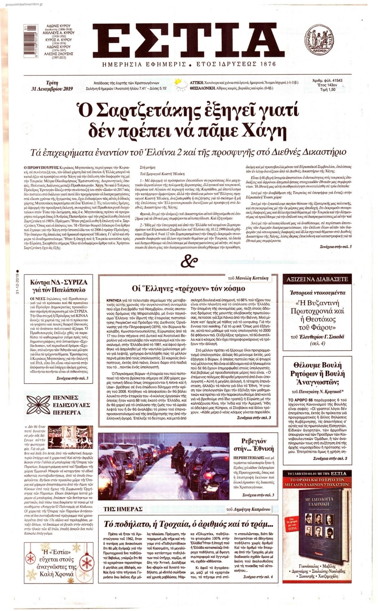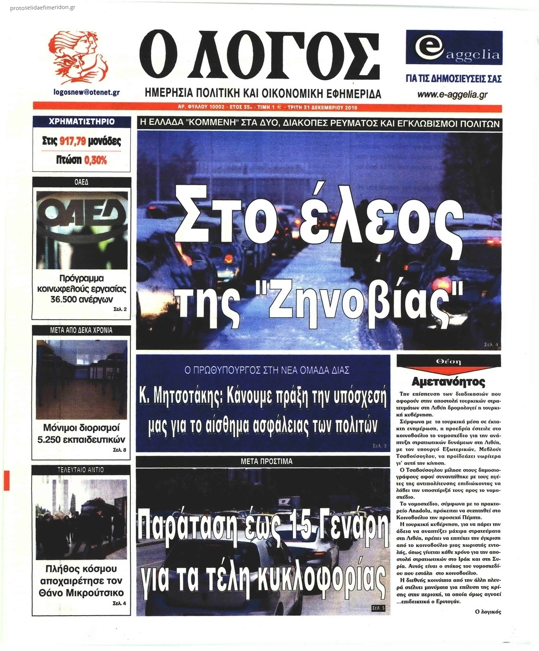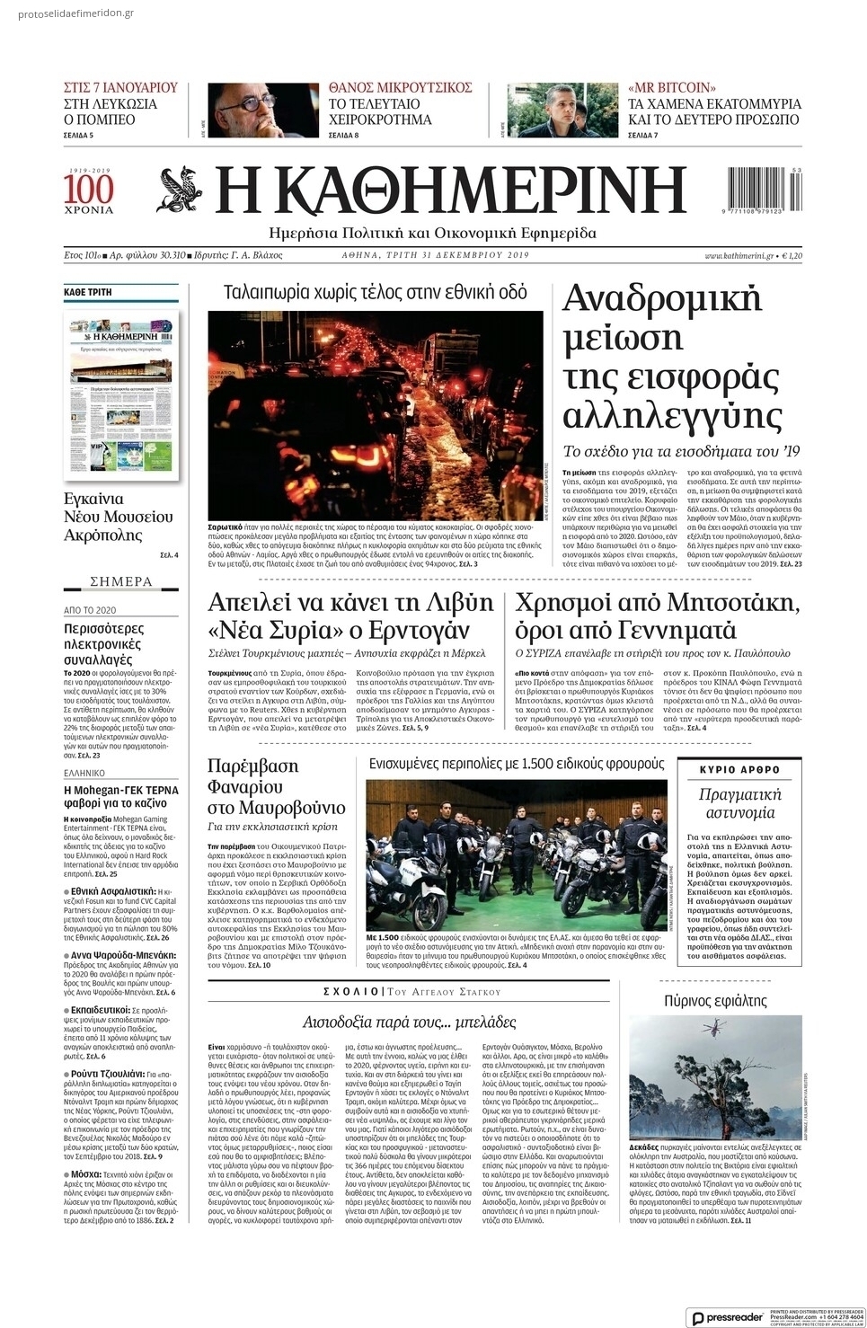 Διαβάστε όλα τα πρωτοσέλιδα των πολιτικών εφημερίδων της Τρίτης 31 Δεκεμβρίου. Πλήρης ενημέρωση με μια γρήγορη ματιά!