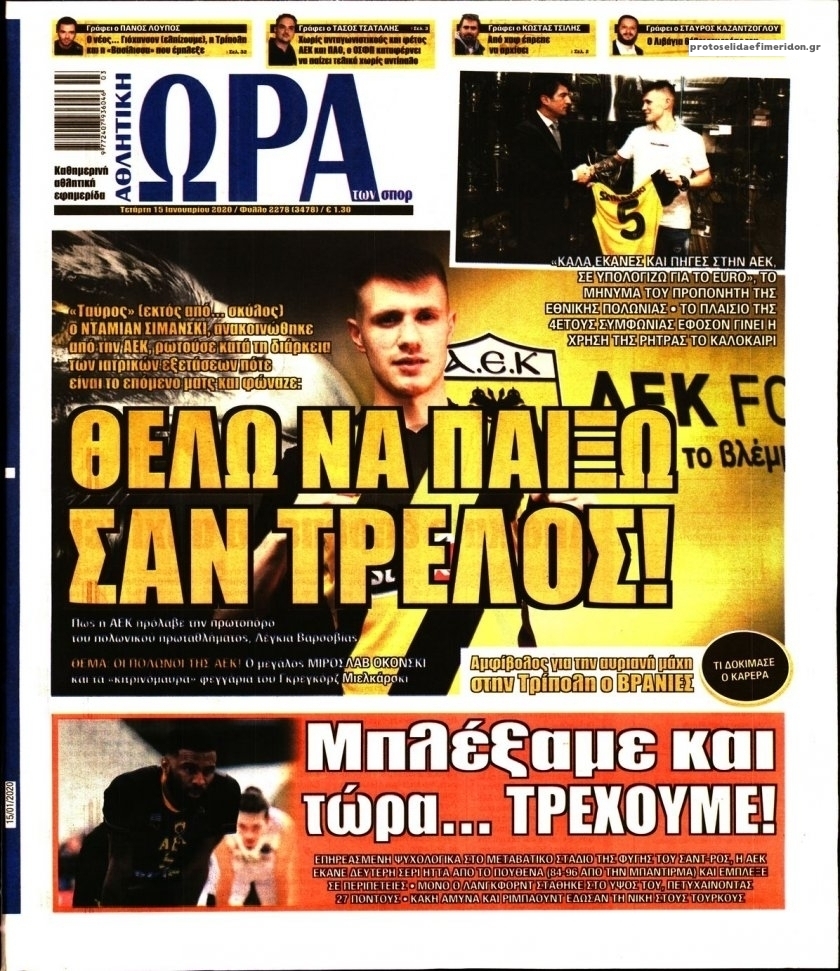 Διαβάστε όλα τα πρωτοσέλιδα των αθλητικών εφημερίδων της Τετάρτης 15 Ιανουαρίου. Πλήρης ενημέρωση με μια γρήγορη ματιά!