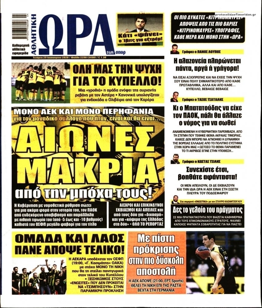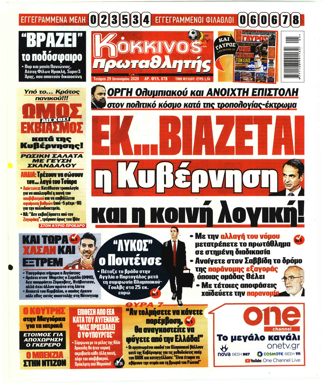 Διαβάστε όλα τα πρωτοσέλιδα των αθλητικών εφημερίδων της Τετάρτης 29 Ιανουαρίου. Πλήρης ενημέρωση με μια γρήγορη ματιά!