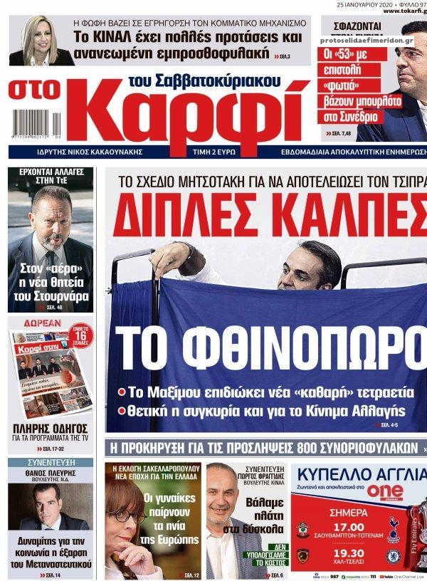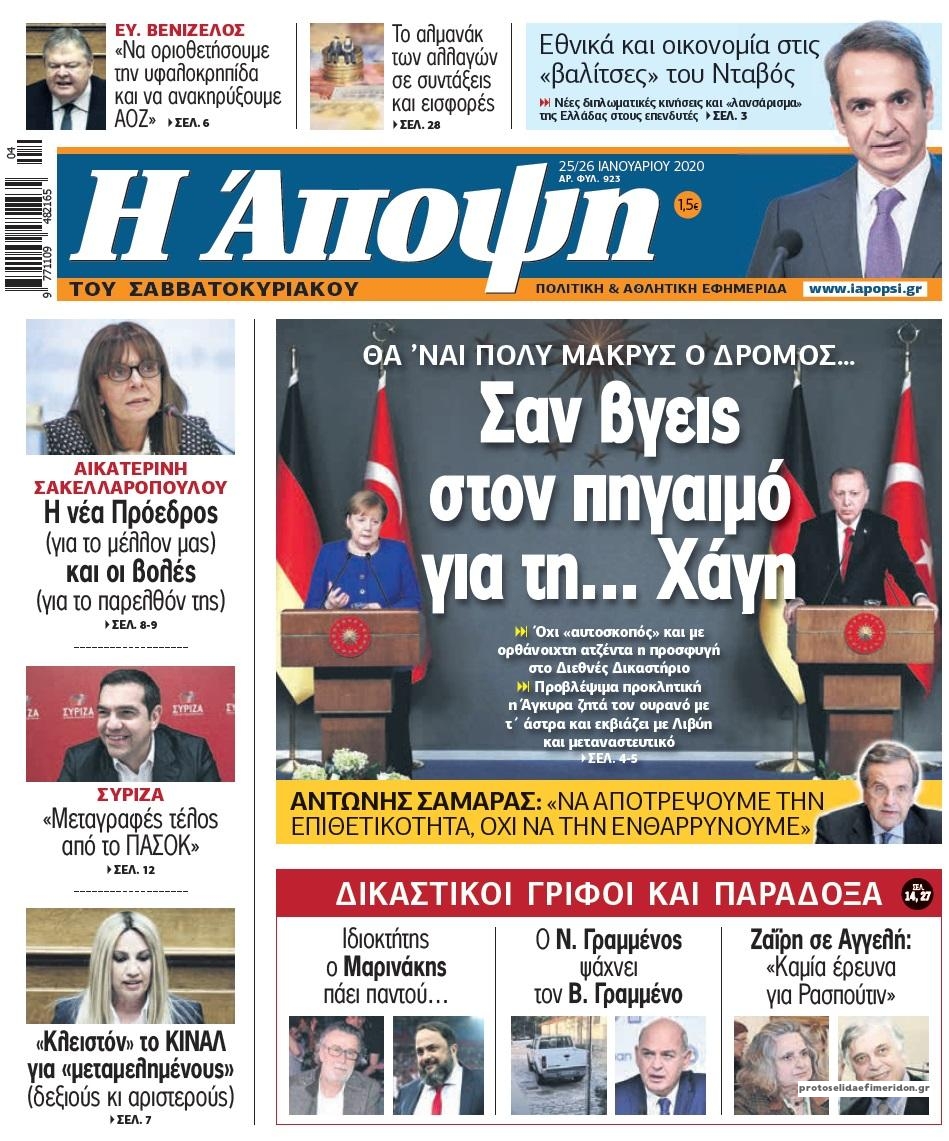 NewsMEDIASLIDER Διαβάστε όλα τα πρωτοσέλιδα των πολιτικών εφημερίδων του Σαββάτου 25 Ιανουαρίου 2020 FacebookXEmailViberWhatsAppCopy URLΤυπώνω Διαβάστε όλα τα πρωτοσέλιδα των πολιτικών εφημερίδων του Σαββάτου 25 Ιανουαρίου. Πλήρης ενημέρωση με μια γρήγορη ματιά!
