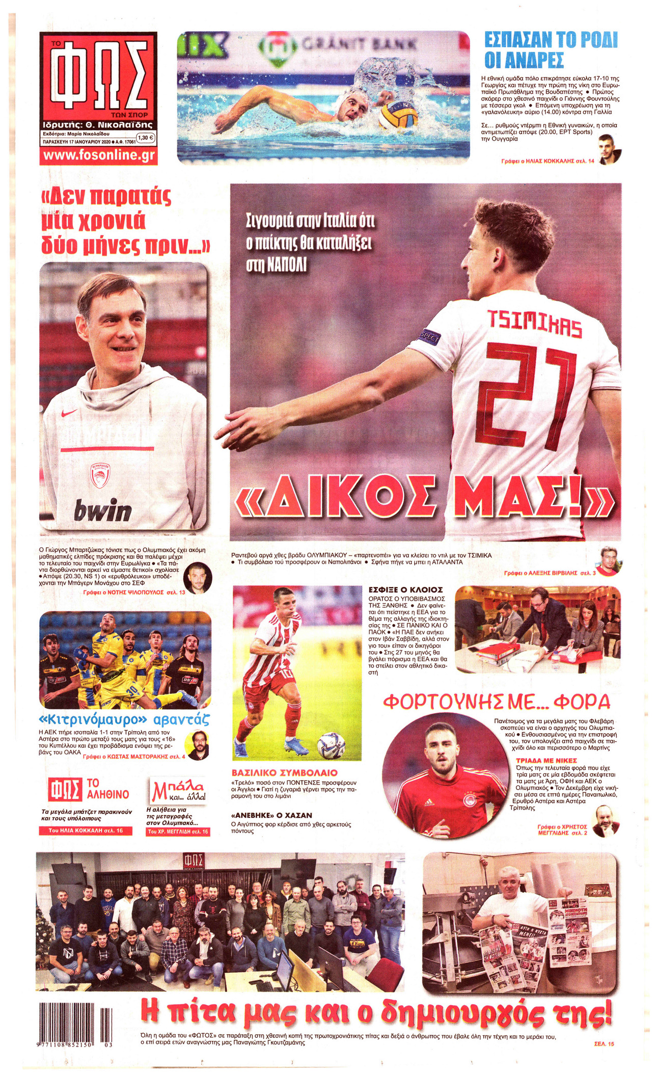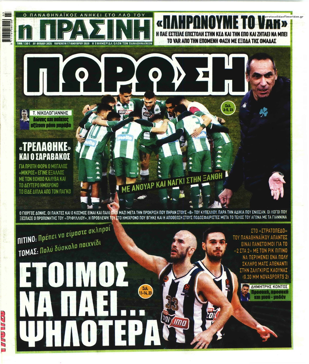 Διαβάστε όλα τα πρωτοσέλιδα των αθλητικών εφημερίδων της Παρασκευής 17 Iανουαρίου. Πλήρης ενημέρωση με μια γρήγορη ματιά!