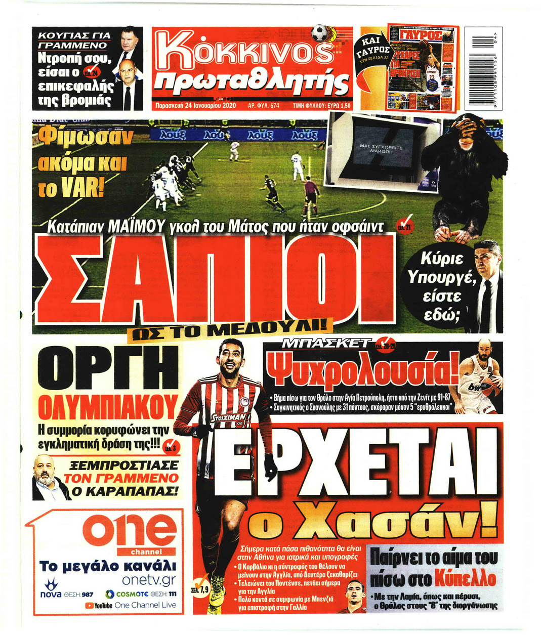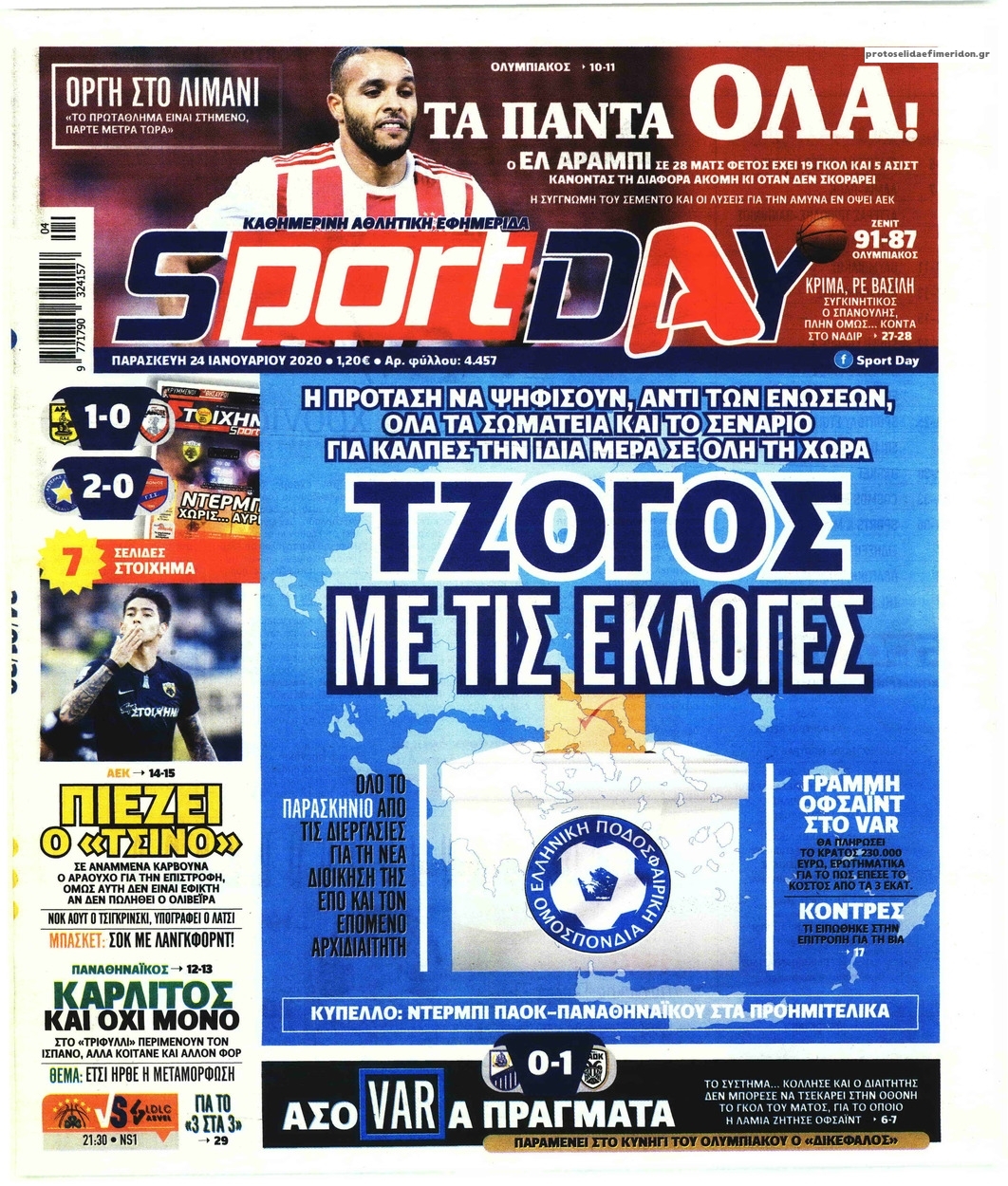 Διαβάστε όλα τα πρωτοσέλιδα των αθλητικών εφημερίδων της Παρασκευής 24 Iανουαρίου. Πλήρης ενημέρωση με μια γρήγορη ματιά!