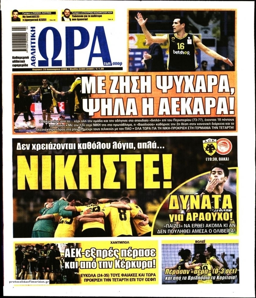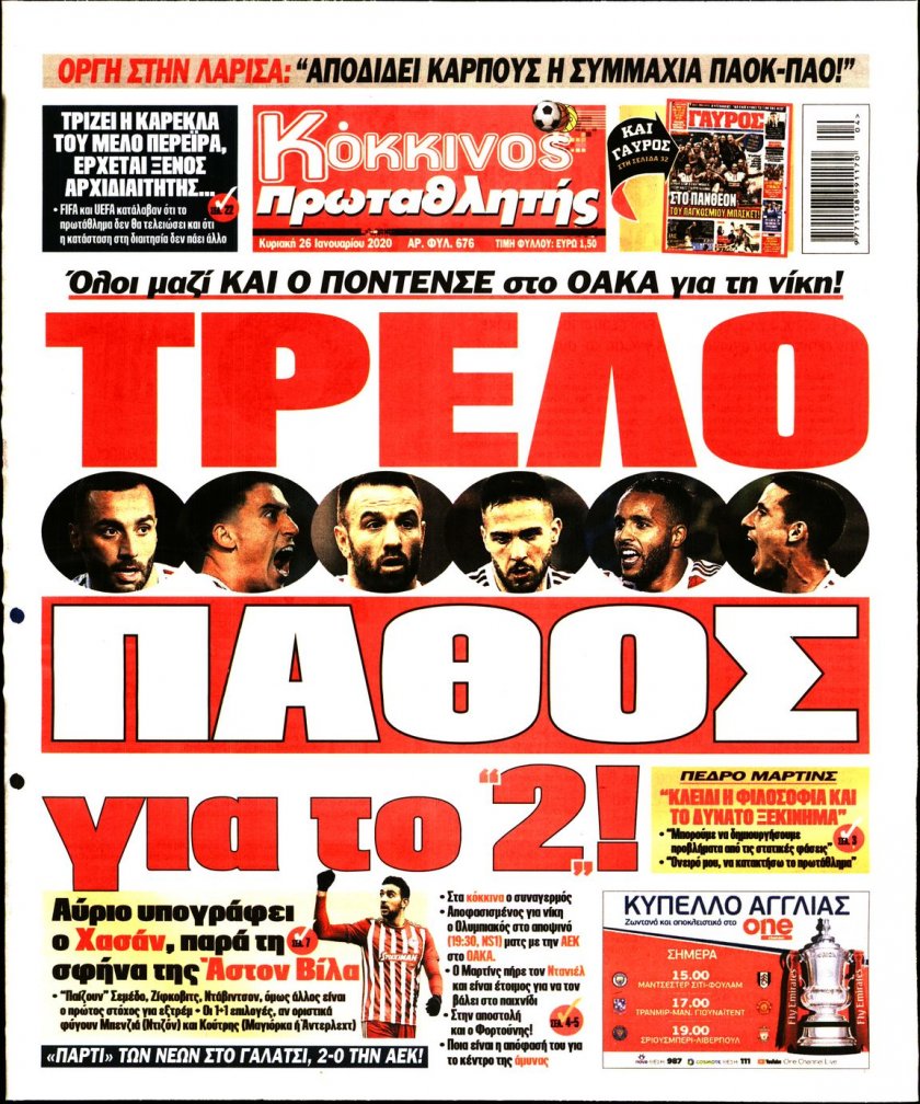 NewsMEDIA Διαβάστε όλα τα πρωτοσέλιδα των αθλητικών εφημερίδων της Κυριακής 26 Ιανουαρίου 2020 FacebookXEmailViberWhatsAppCopy URLΤυπώνω Διαβάστε όλα τα πρωτοσέλιδα των αθλητικών εφημερίδων της Κυριακής 26 Ιανουαρίου. Πλήρης ενημέρωση με μια γρήγορη ματιά!