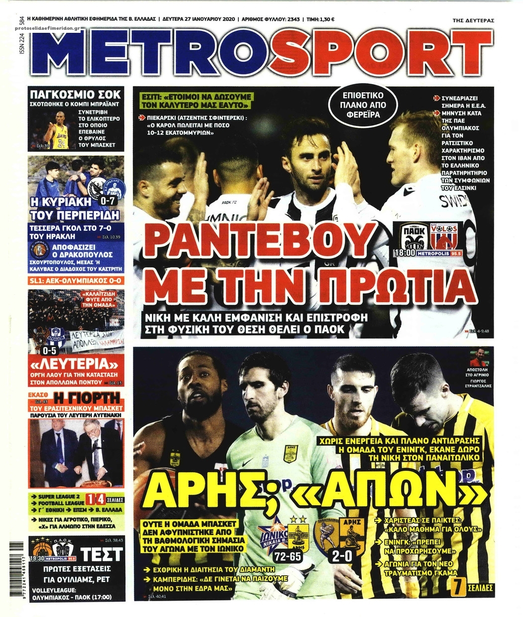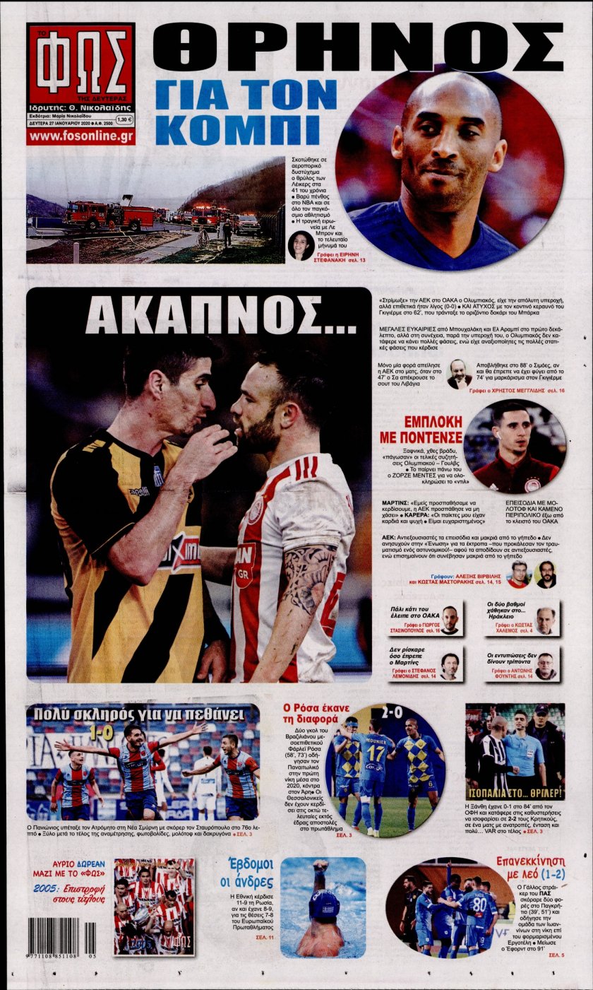 Διαβάστε όλα τα πρωτοσέλιδα των αθλητικών εφημερίδων της Δευτέρας 27 Ιανουαρίου. Πλήρης ενημέρωση με μια γρήγορη ματιά!