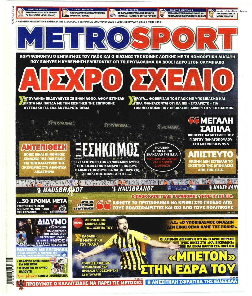 Διαβάστε όλα τα πρωτοσέλιδα των αθλητικών εφημερίδων της Τετάρτης 29 Ιανουαρίου. Πλήρης ενημέρωση με μια γρήγορη ματιά!