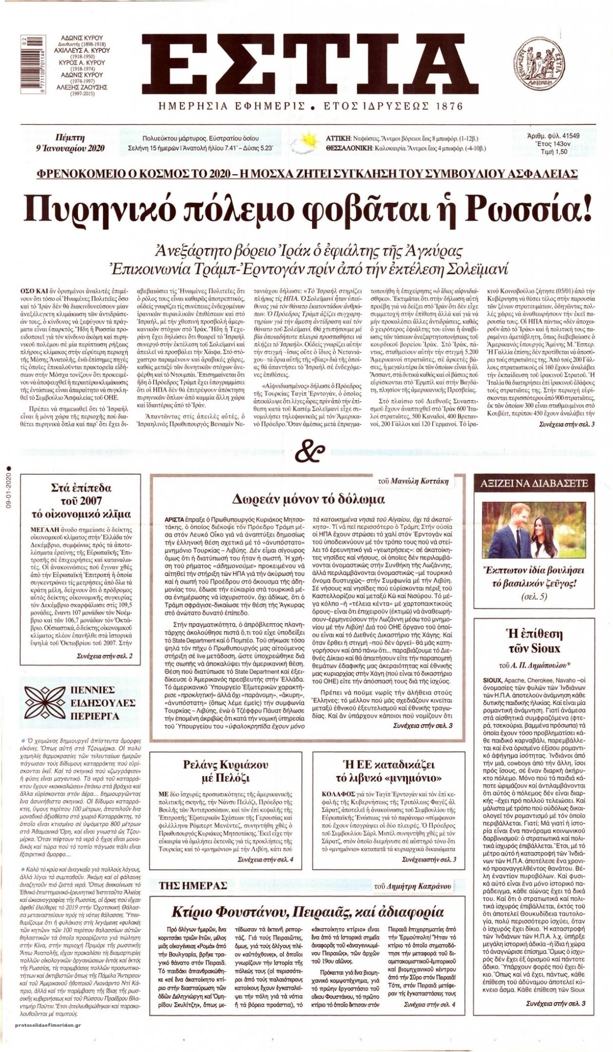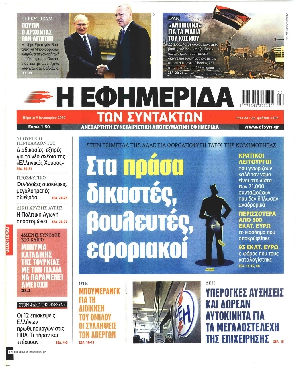 Διαβάστε όλα τα πρωτοσέλιδα των πολιτικών εφημερίδων της Πέμπτης 9 Ιανουαρίου. Πλήρης ενημέρωση με μια γρήγορη ματιά!