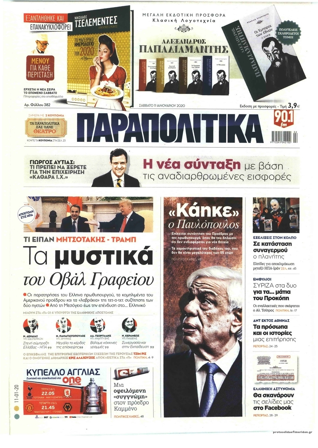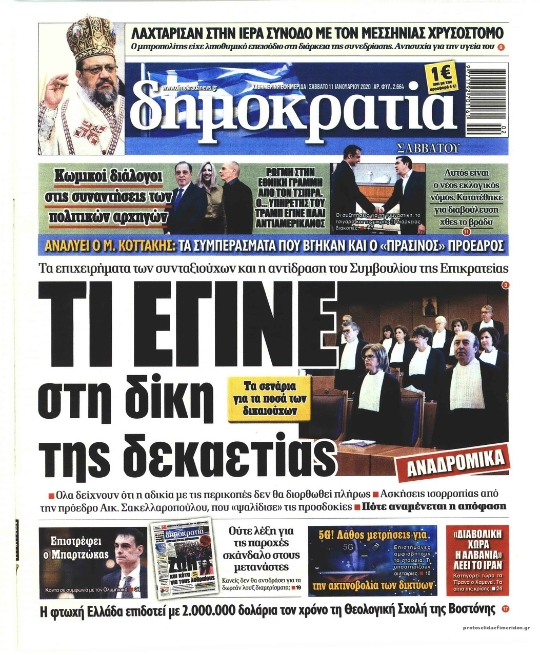Διαβάστε όλα τα πρωτοσέλιδα των πολιτικών εφημερίδων του Σαββάτου 11 Ιανουαρίου. Πλήρης ενημέρωση με μια γρήγορη ματιά!