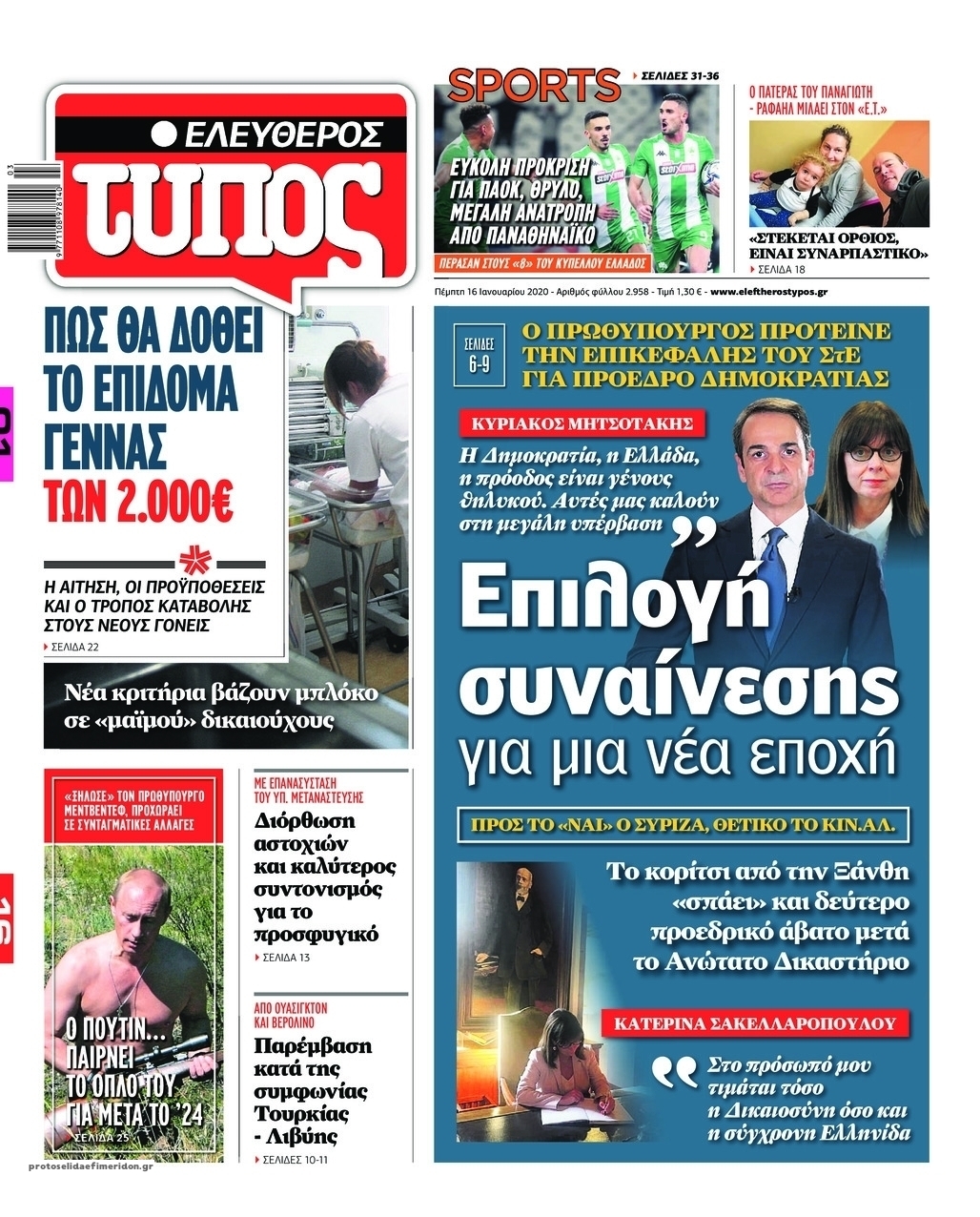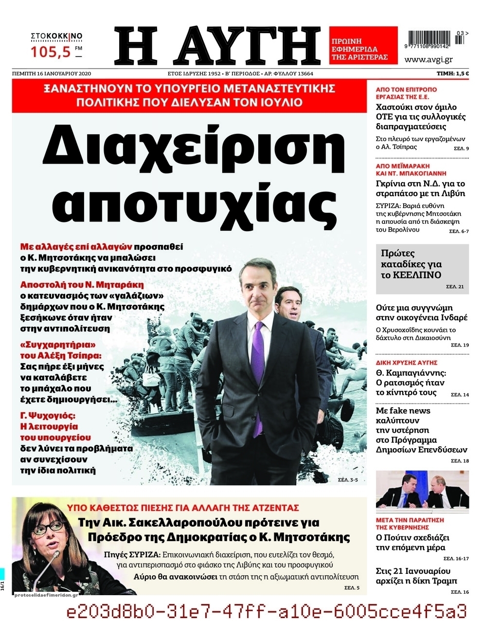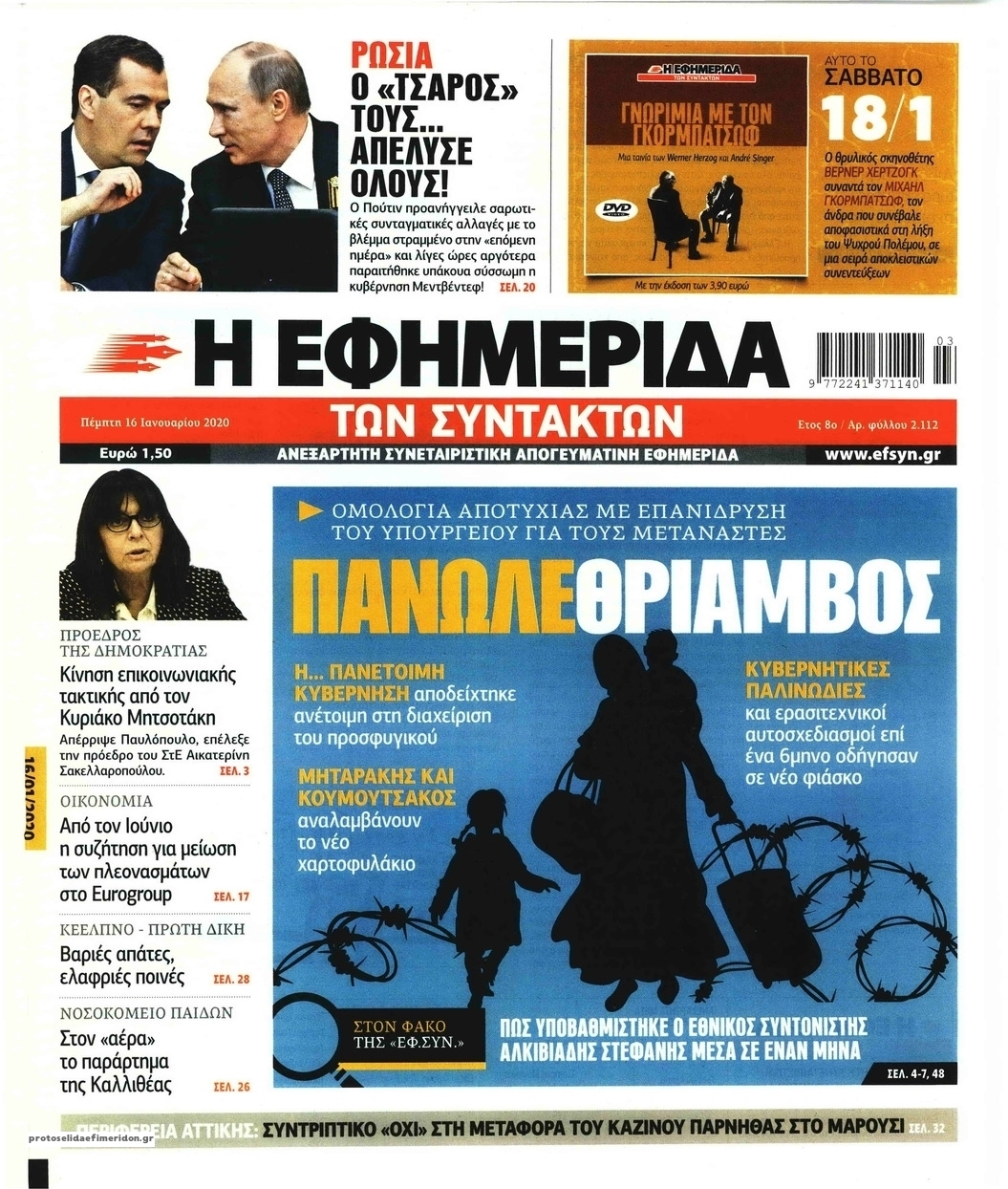Διαβάστε όλα τα πρωτοσέλιδα των πολιτικών εφημερίδων της Πέμπτης 16 Ιανουαρίου. Πλήρης ενημέρωση με μια γρήγορη ματιά!