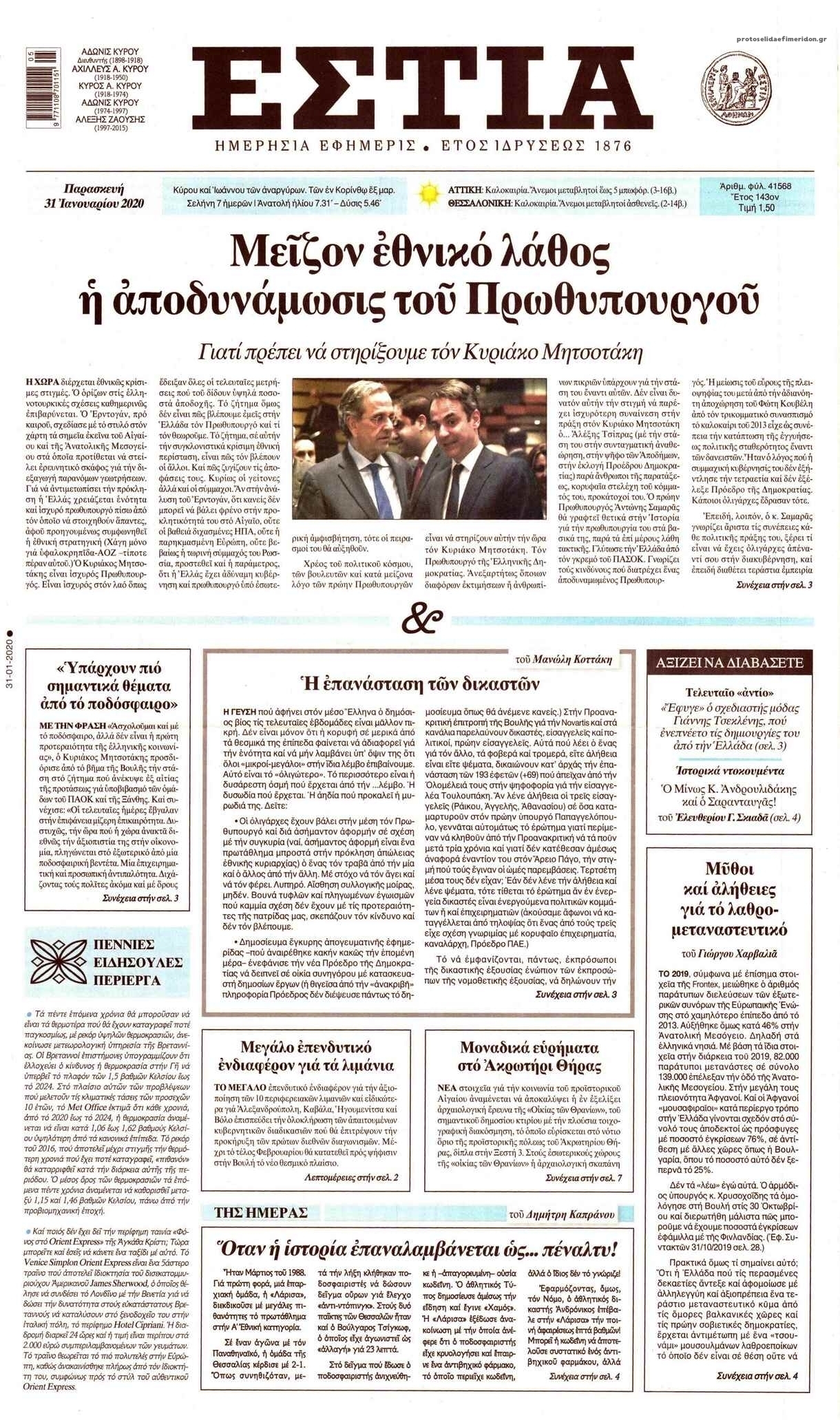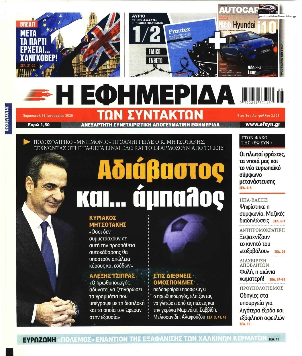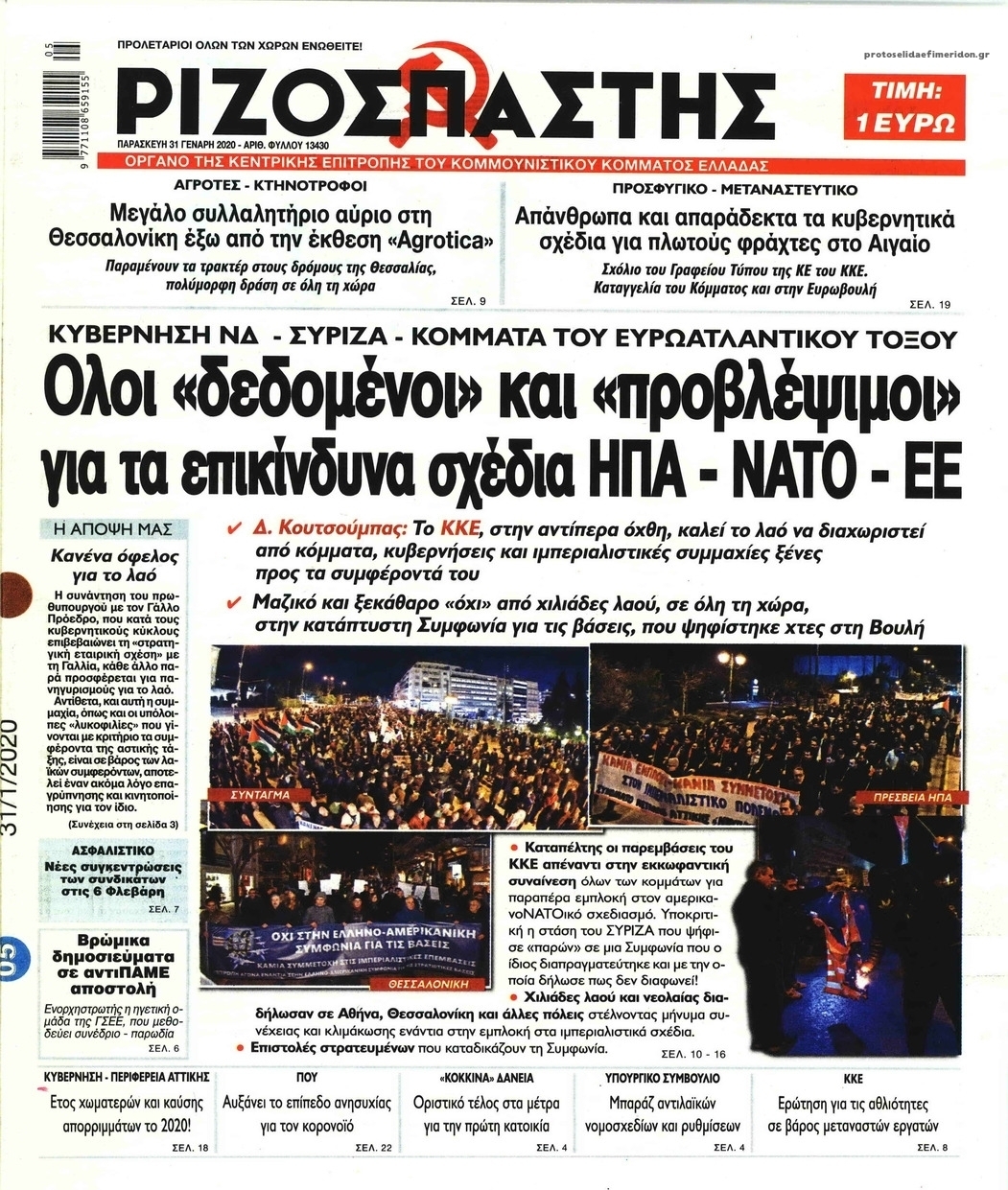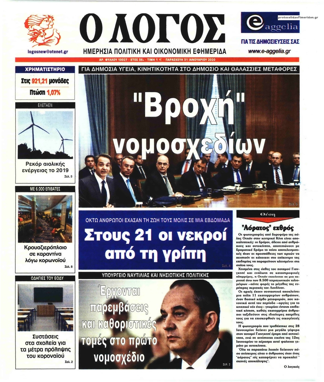 Διαβάστε όλα τα πρωτοσέλιδα των πολιτικών εφημερίδων της Παρασκευής 31 Iανουαρίου. Πλήρης ενημέρωση με μια γρήγορη ματιά!