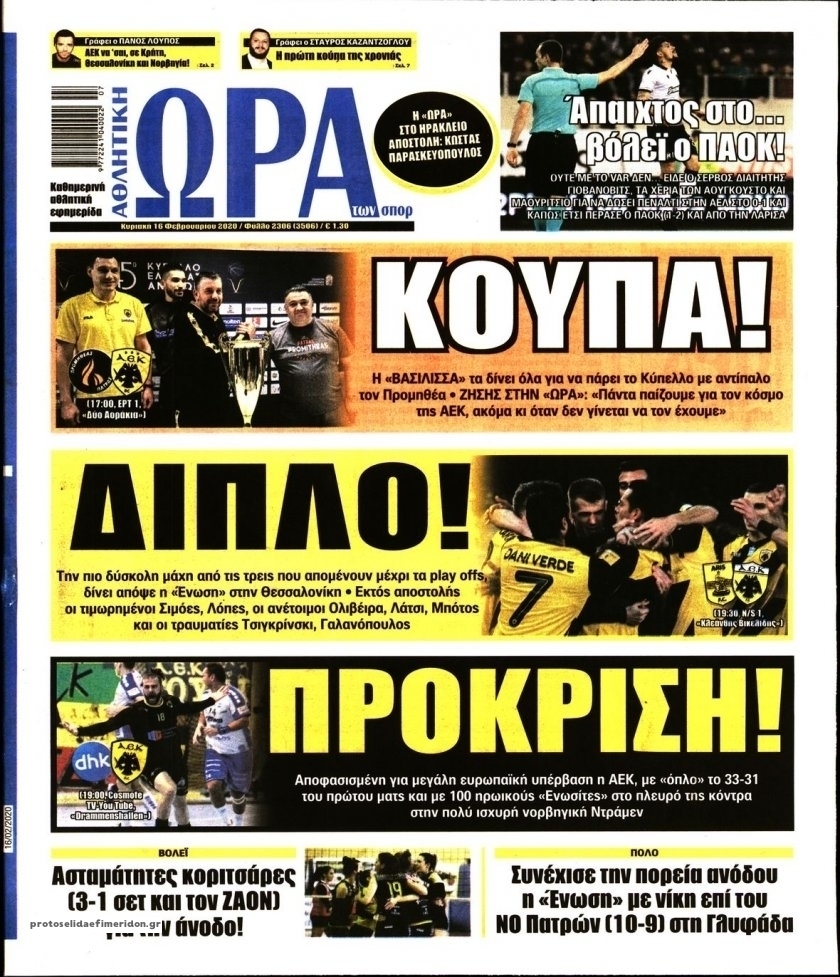 Διαβάστε όλα τα πρωτοσέλιδα των αθλητικών εφημερίδων της Κυριακής 16 Φεβρουαρίου. Πλήρης ενημέρωση με μια γρήγορη ματιά!