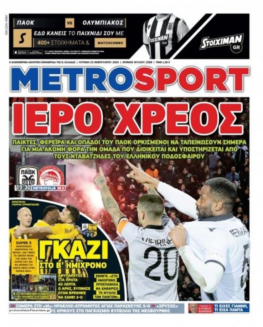 Διαβάστε όλα τα πρωτοσέλιδα των αθλητικών εφημερίδων της Κυριακής 23 Φεβρουαρίου. Πλήρης ενημέρωση με μια γρήγορη ματιά!