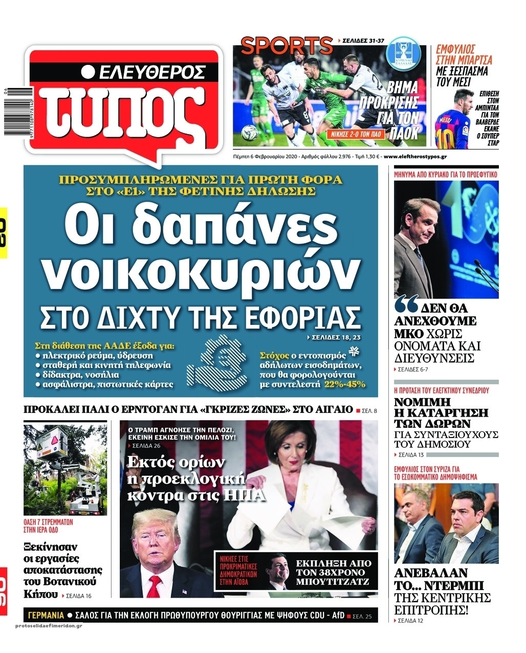 Διαβάστε όλα τα πρωτοσέλιδα των πολιτικών εφημερίδων της Πέμπτης 6 Φεβρουαρίου. Πλήρης ενημέρωση με μια γρήγορη ματιά!