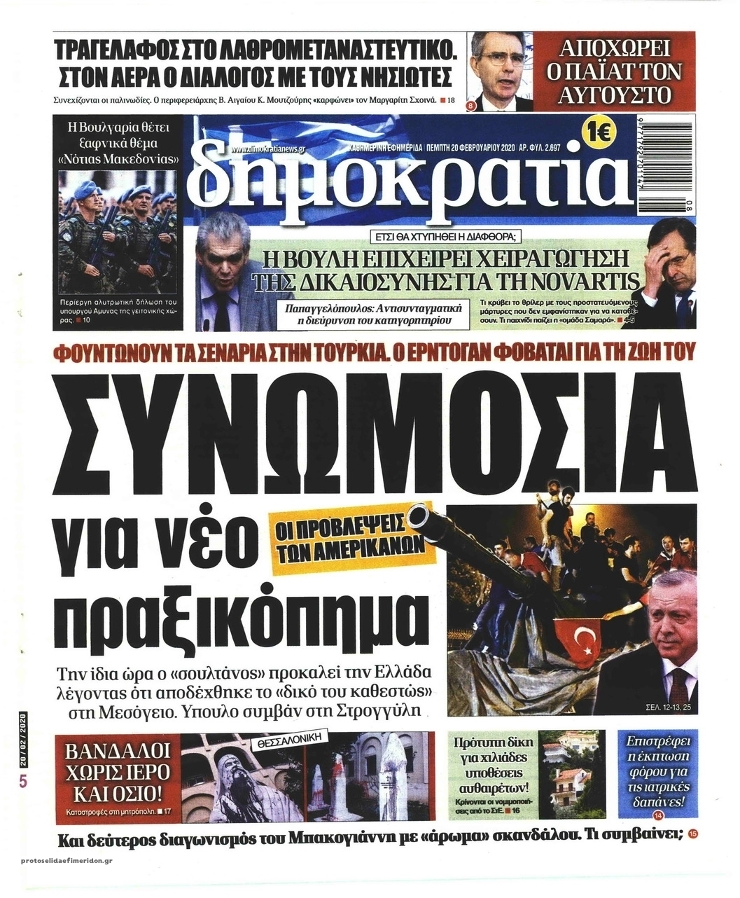 Διαβάστε όλα τα πρωτοσέλιδα των πολιτικών εφημερίδων της Πέμπτης 20 Φεβρουαρίου. Πλήρης ενημέρωση με μια γρήγορη ματιά!
