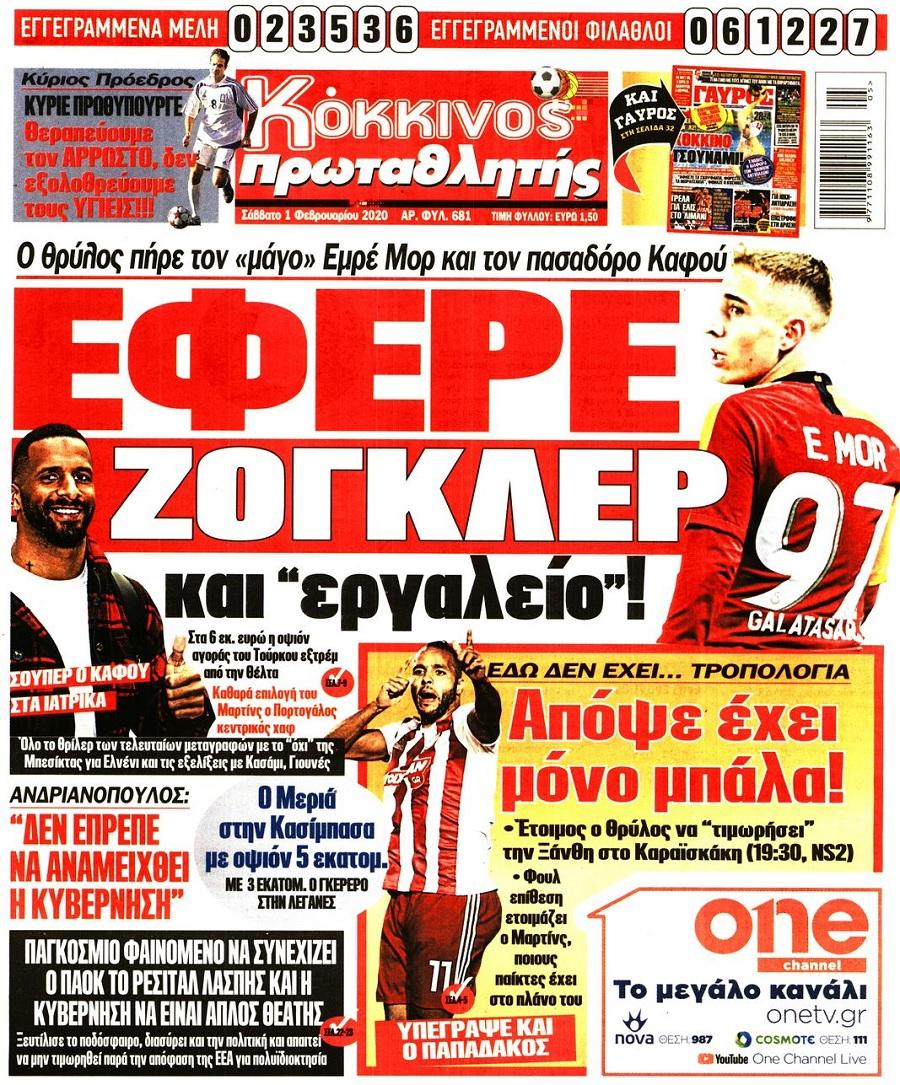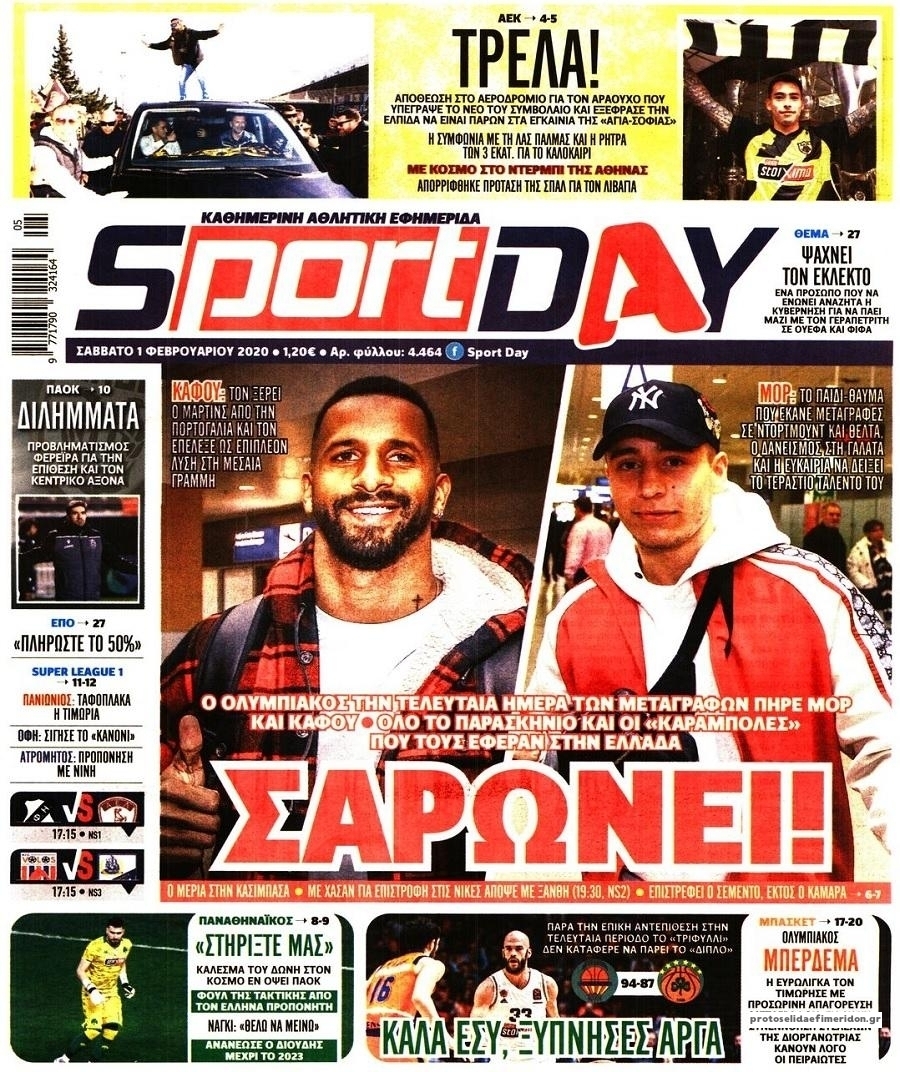 Διαβάστε όλα τα πρωτοσέλιδα των αθλητικών εφημερίδων του Σαββάτου 1 Φεβρουαρίου. Πλήρης ενημέρωση με μια γρήγορη ματιά!