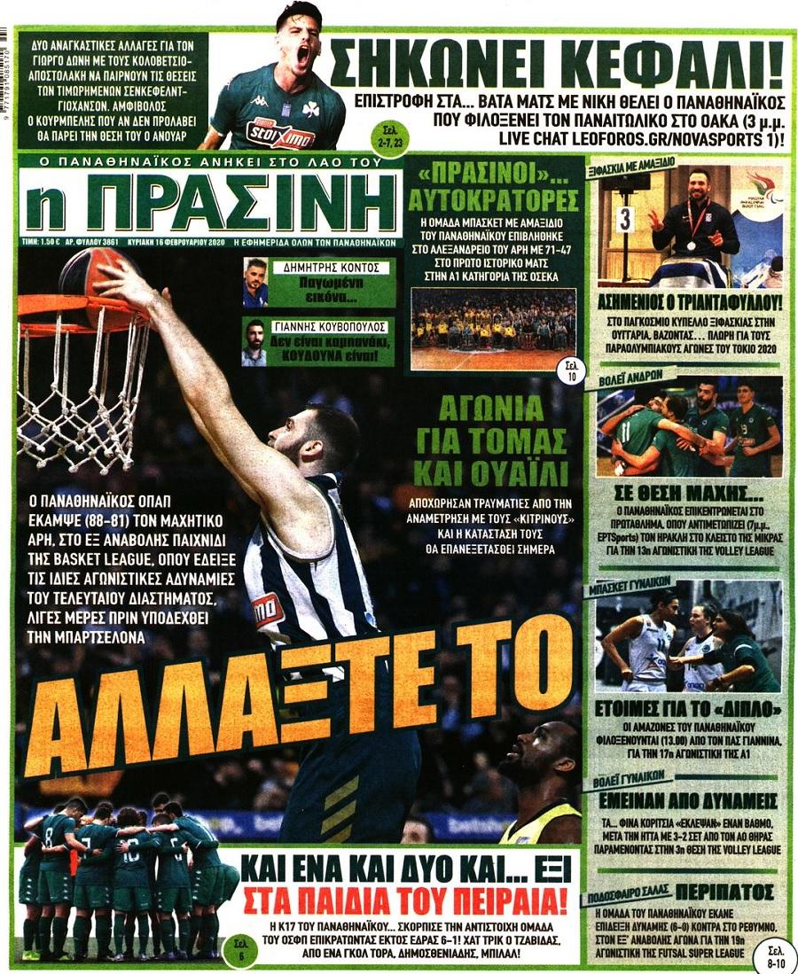 Διαβάστε όλα τα πρωτοσέλιδα των αθλητικών εφημερίδων της Κυριακής 16 Φεβρουαρίου. Πλήρης ενημέρωση με μια γρήγορη ματιά!