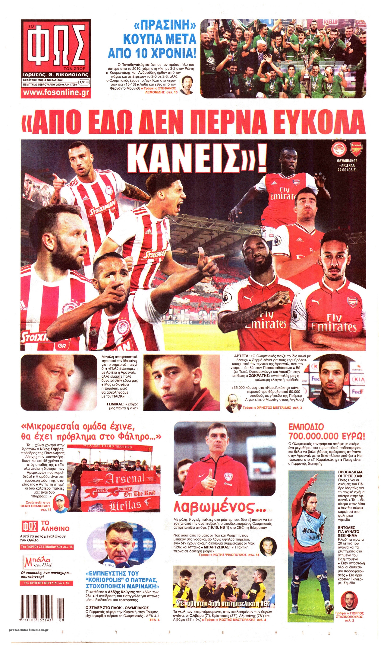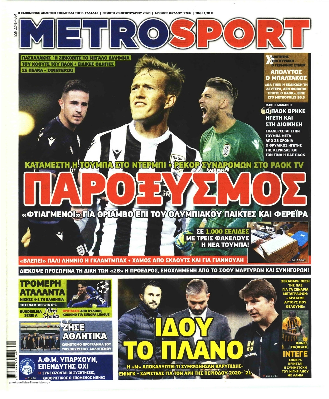 Διαβάστε όλα τα πρωτοσέλιδα των αθλητικών εφημερίδων της Πέμπτης 20 Φεβρουαρίου. Πλήρης ενημέρωση με μια γρήγορη ματιά!