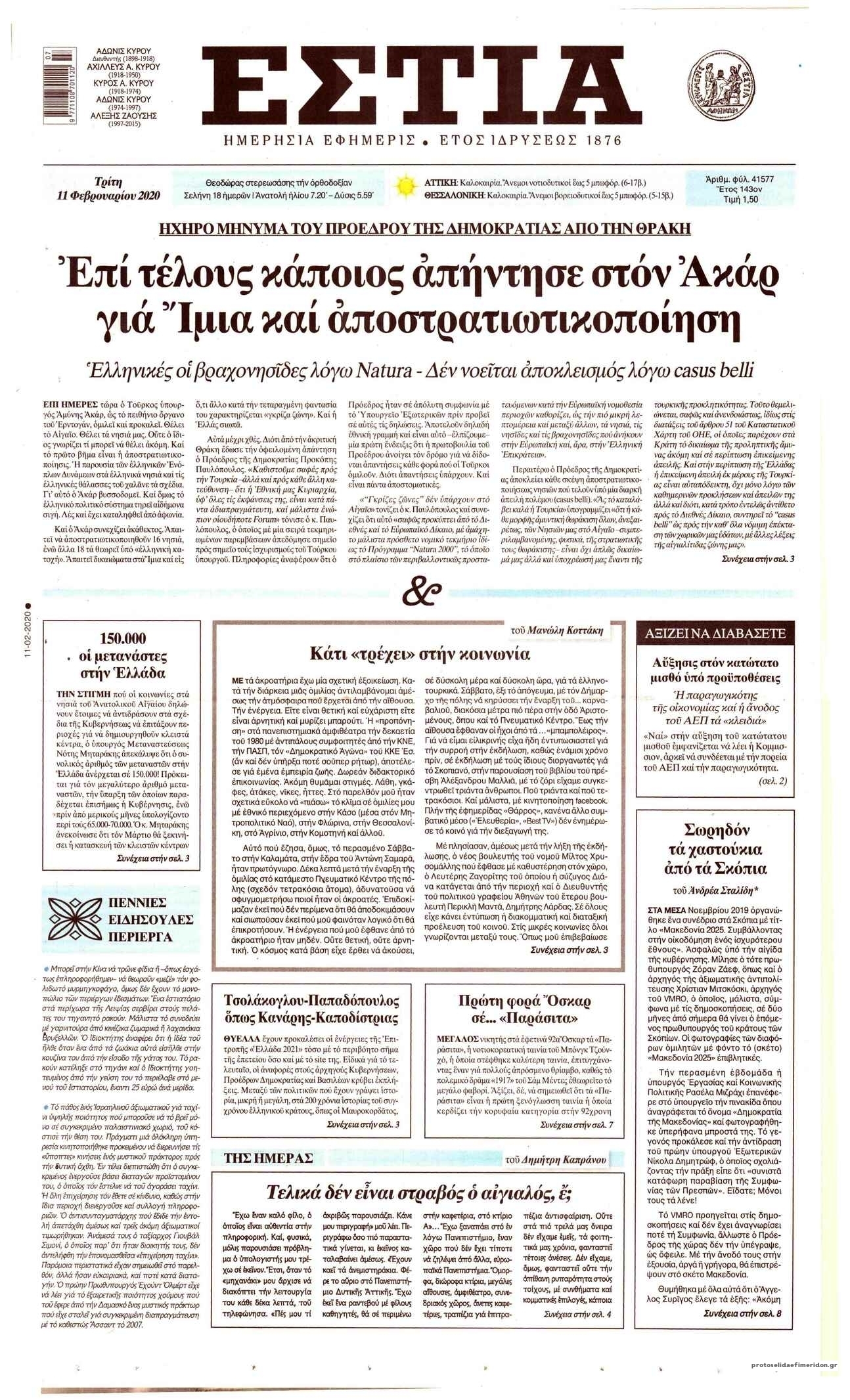 Διαβάστε όλα τα πρωτοσέλιδα των πολιτικών εφημερίδων της Τρίτης 11 Φεβρουαρίου. Πλήρης ενημέρωση με μια γρήγορη ματιά!