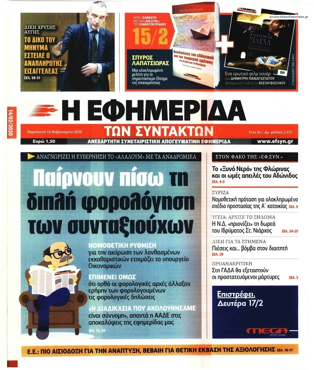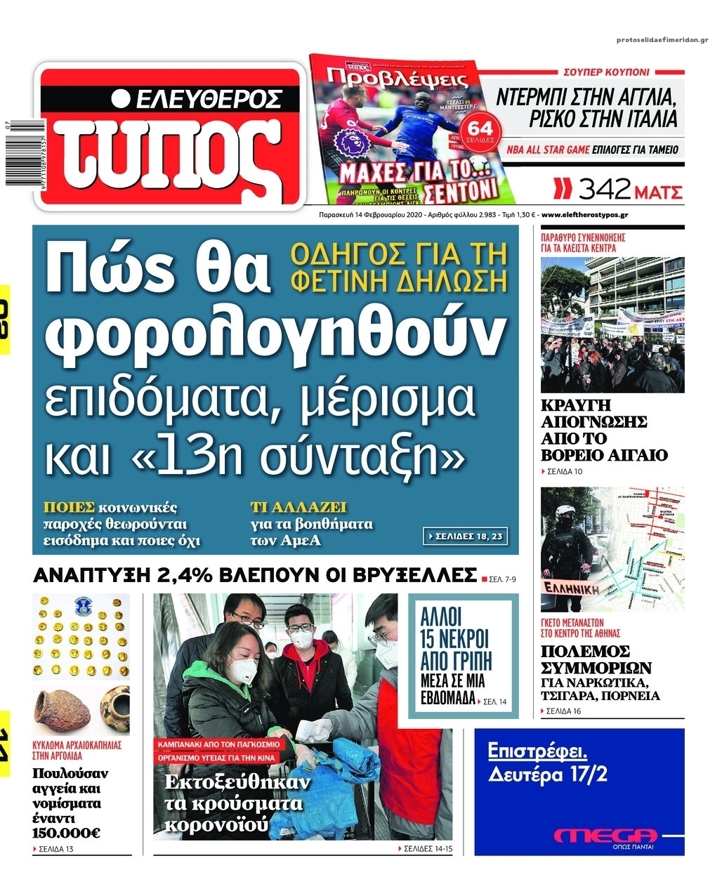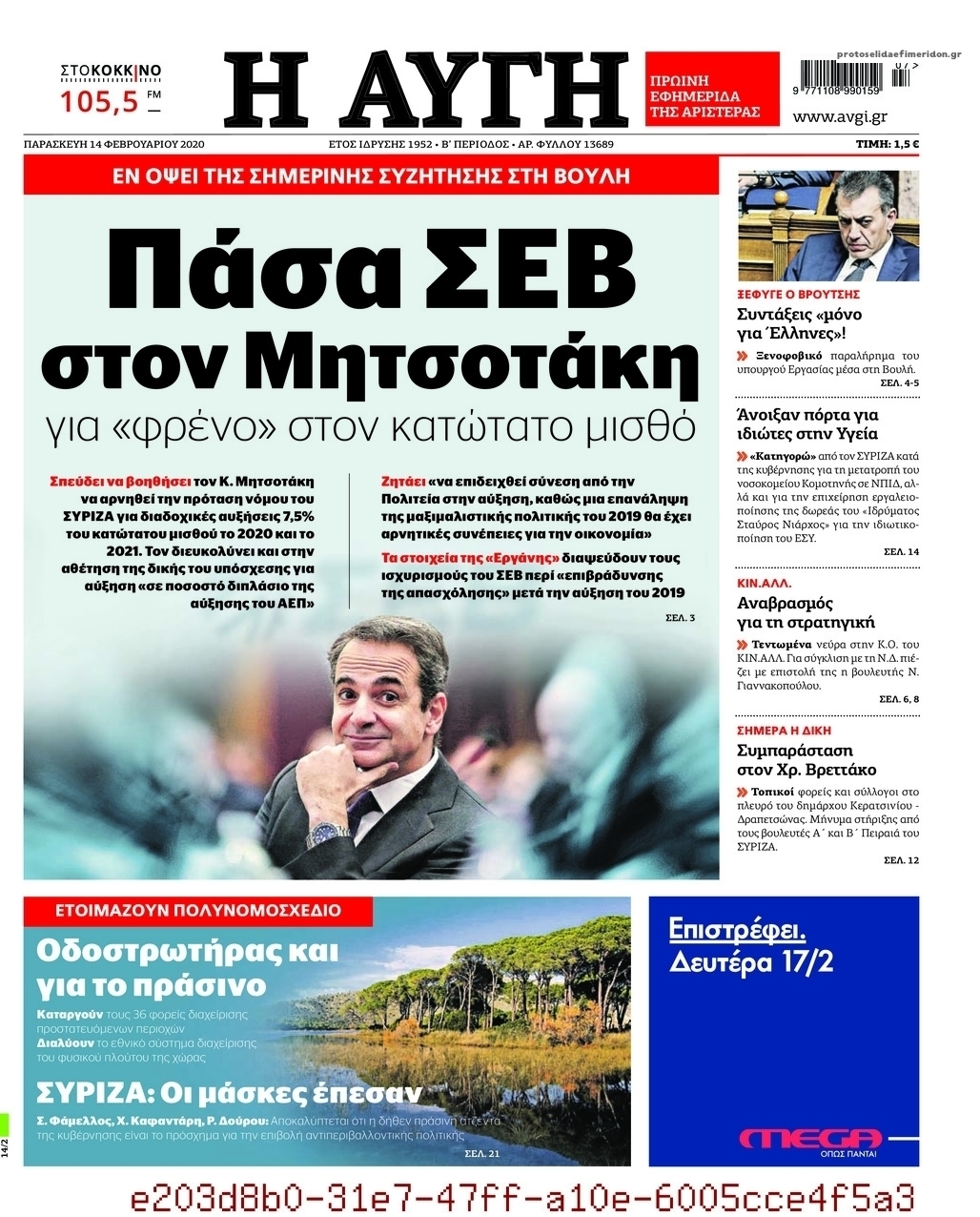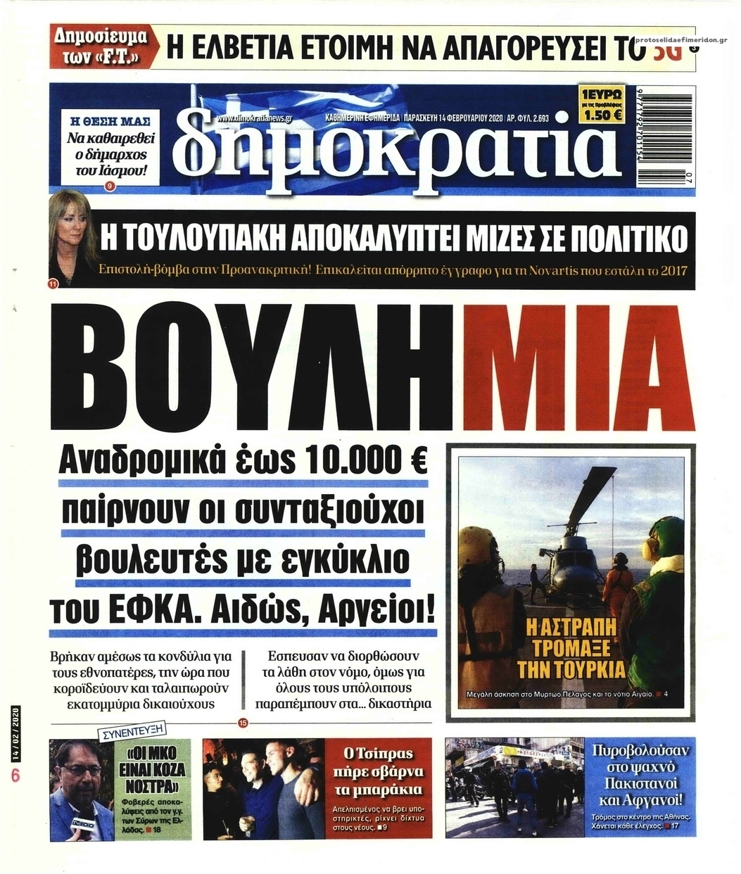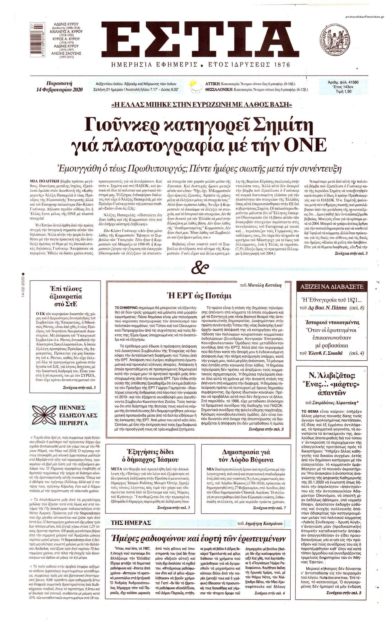 Διαβάστε όλα τα πρωτοσέλιδα των πολιτικών εφημερίδων της Παρασκευής 14 Φεβρουαρίου. Πλήρης ενημέρωση με μια γρήγορη ματιά!