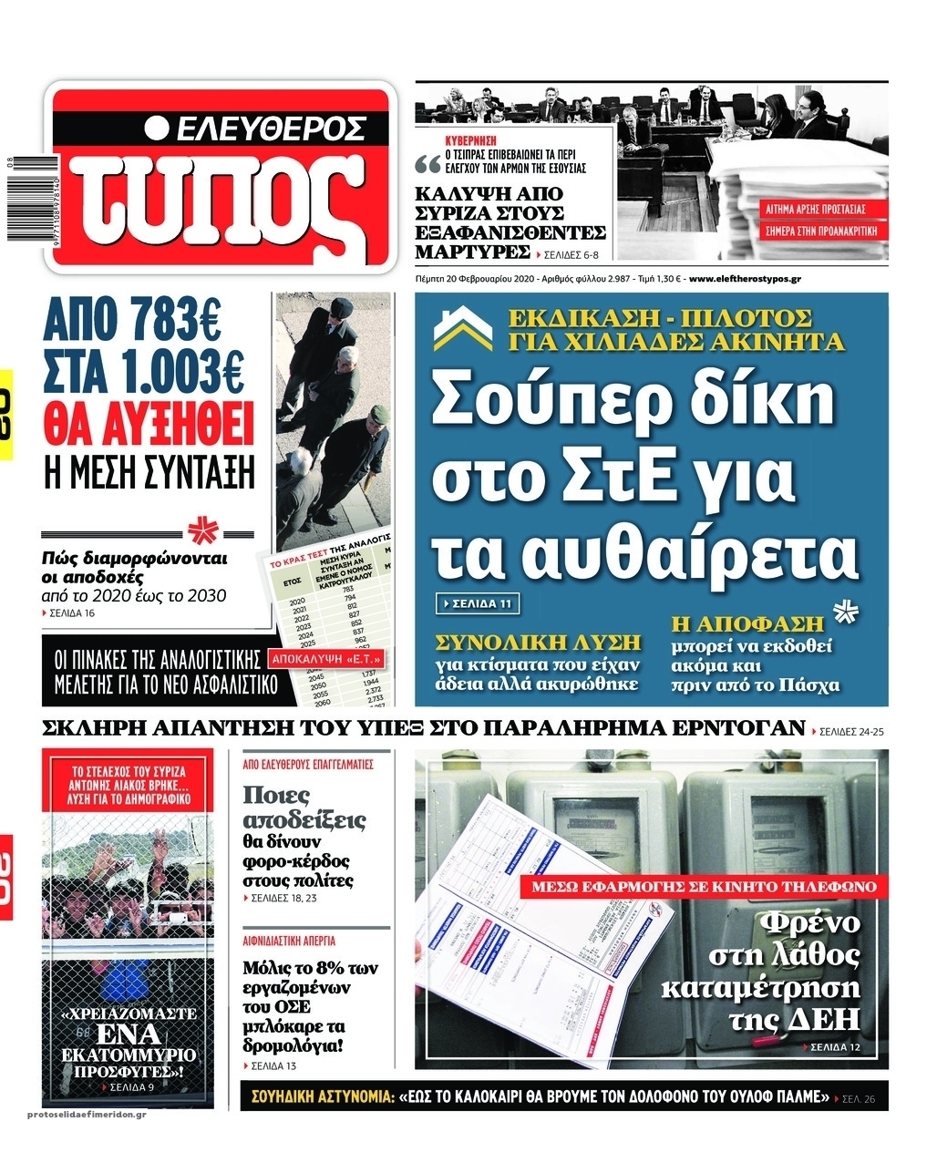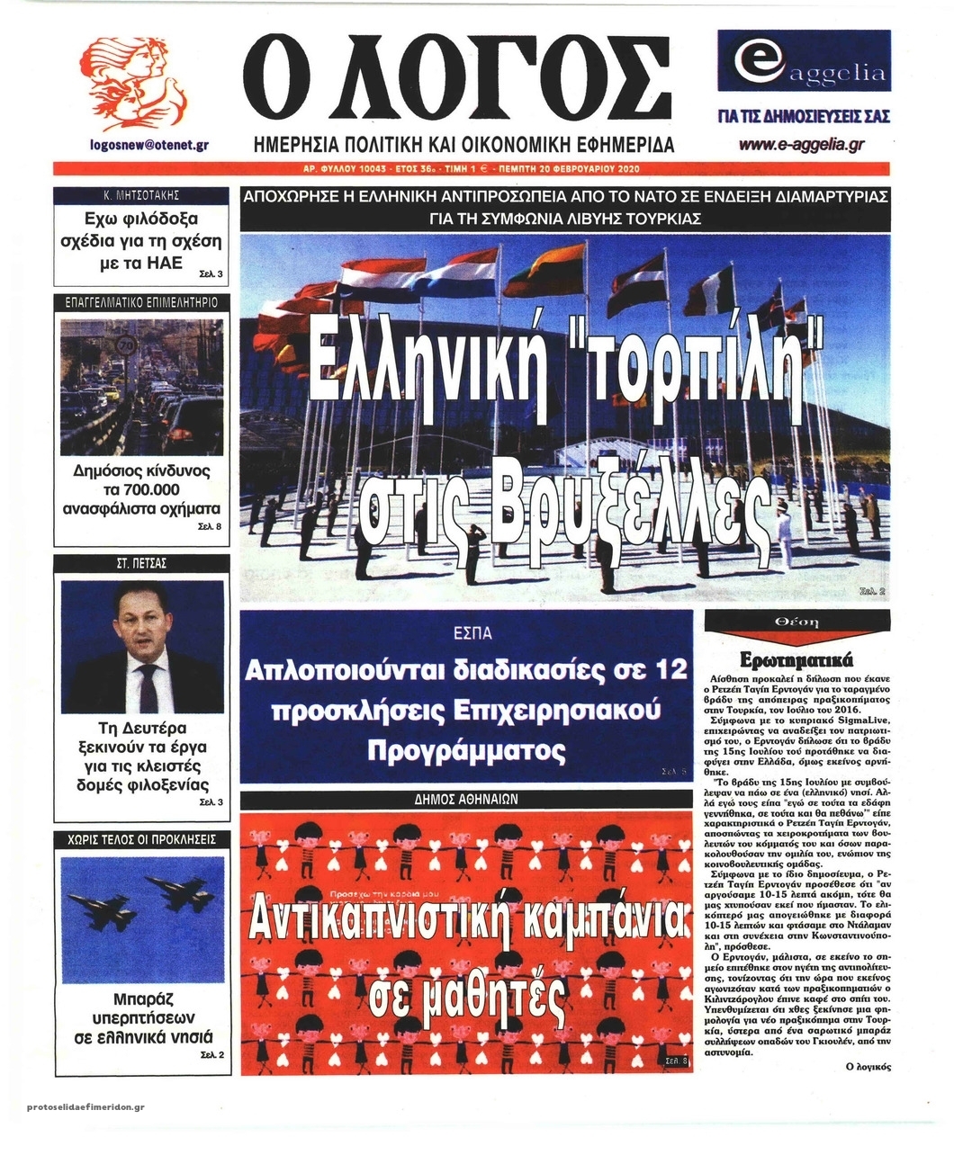 Διαβάστε όλα τα πρωτοσέλιδα των πολιτικών εφημερίδων της Πέμπτης 20 Φεβρουαρίου. Πλήρης ενημέρωση με μια γρήγορη ματιά!