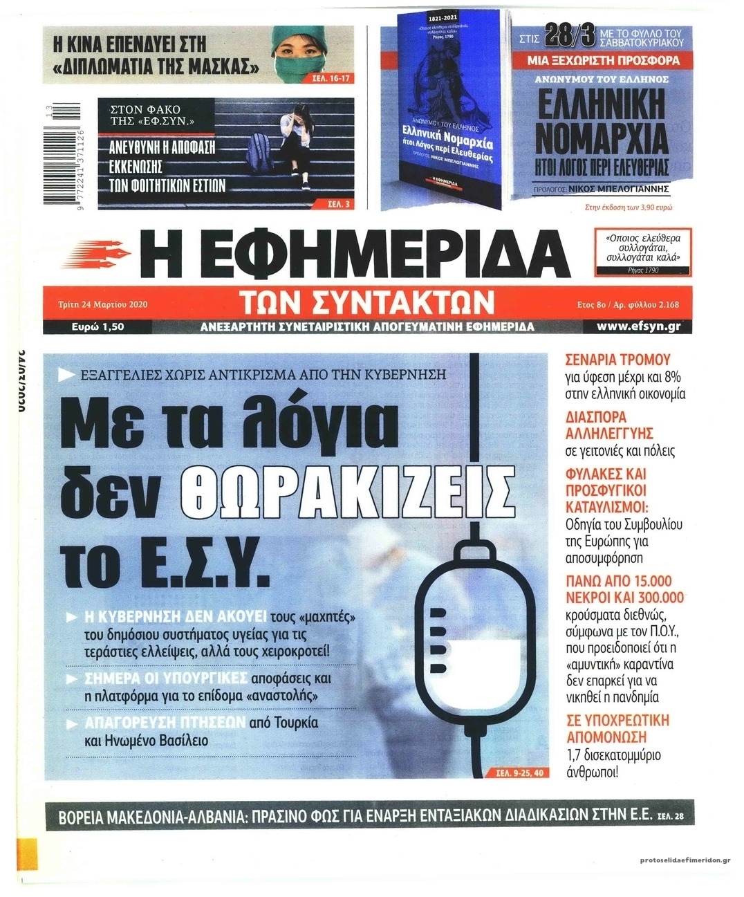 Διαβάστε όλα τα πρωτοσέλιδα των πολιτικών εφημερίδων της Τρίτης 24 Μαρτίου. Πλήρης ενημέρωση με μια γρήγορη ματιά!