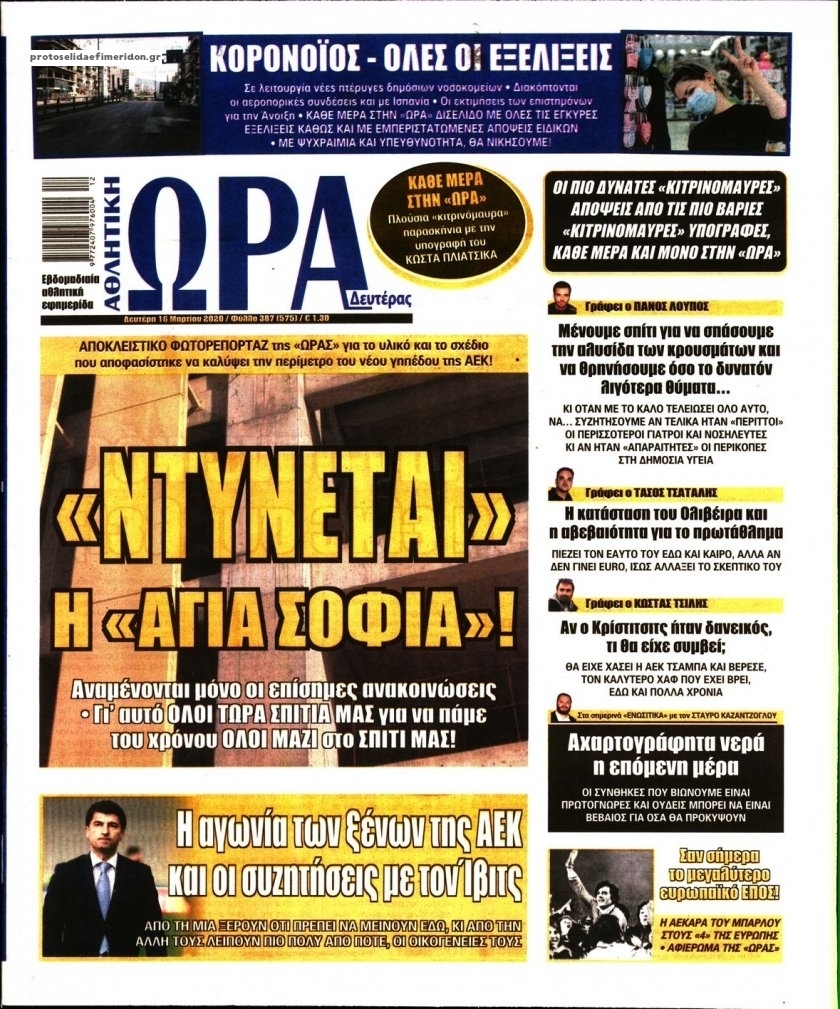 Διαβάστε όλα τα πρωτοσέλιδα των αθλητικών εφημερίδων της Δευτέρας 16 Μαρτίου. Πλήρης ενημέρωση με μια γρήγορη ματιά!
