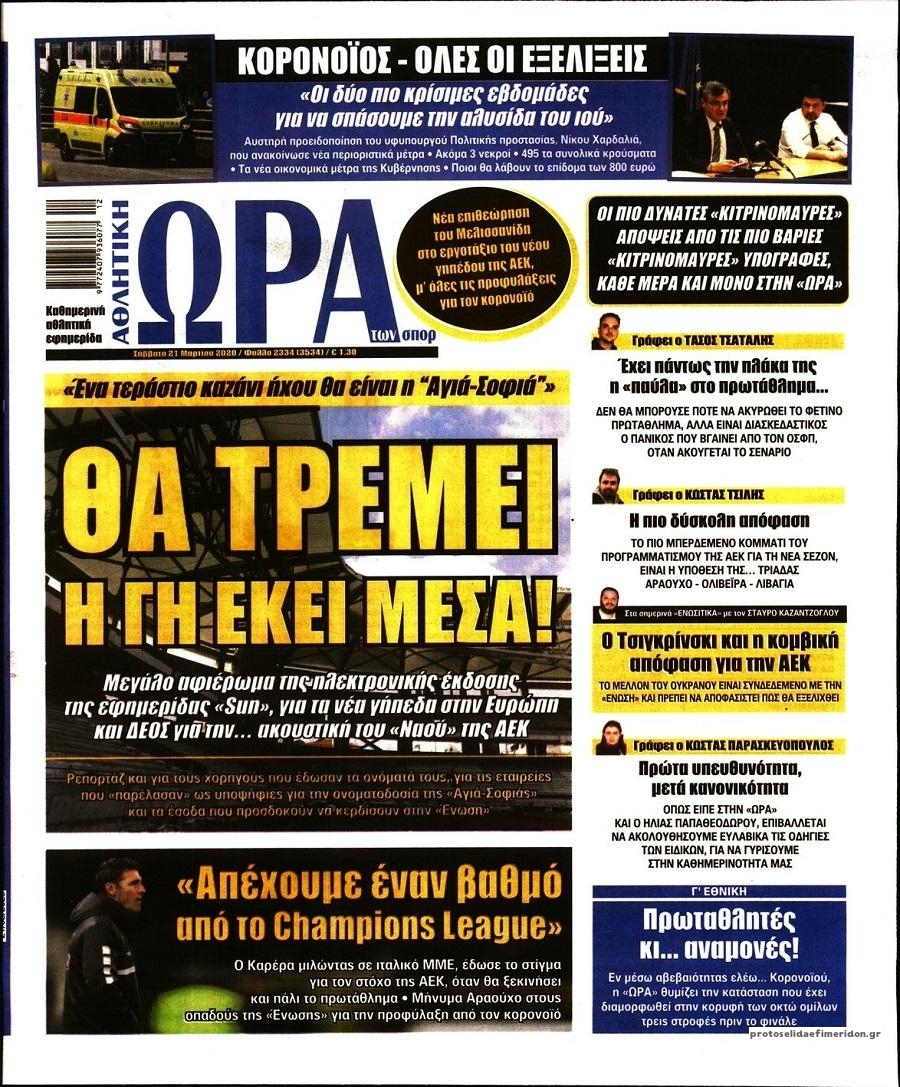 Διαβάστε όλα τα πρωτοσέλιδα των αθλητικών εφημερίδων του Σαββάτου 21 Μαρτίου. Πλήρης ενημέρωση με μια γρήγορη ματιά!