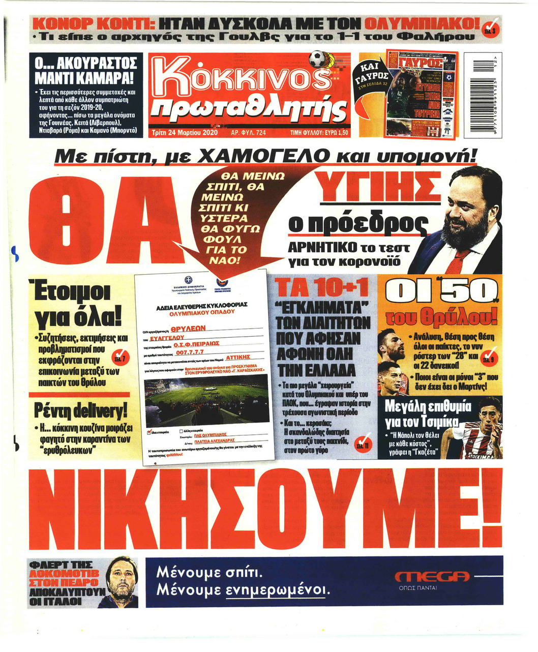 Διαβάστε όλα τα πρωτοσέλιδα των αθλητικών εφημερίδων της Τρίτης 24 Μαρτίου. Πλήρης ενημέρωση με μια γρήγορη ματιά!