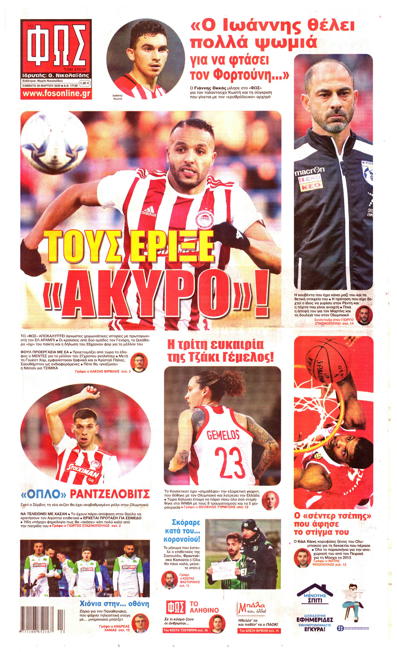 Διαβάστε όλα τα πρωτοσέλιδα των αθλητικών εφημερίδων του Σαββάτου 28 Μαρτίου. Πλήρης ενημέρωση με μια γρήγορη ματιά!