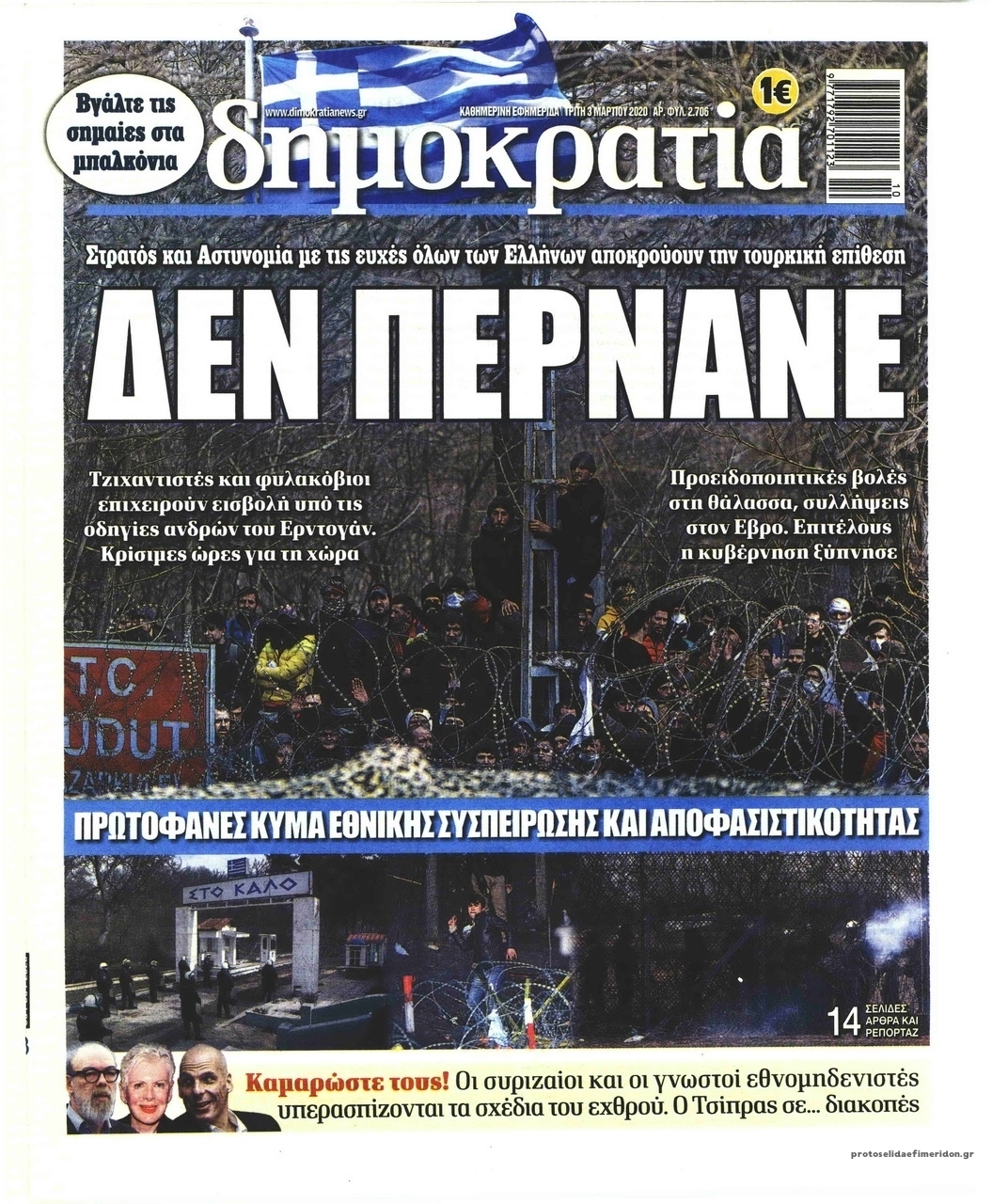 Διαβάστε όλα τα πρωτοσέλιδα των πολιτικών εφημερίδων της Τρίτης 3 Μαρτίου. Πλήρης ενημέρωση με μια γρήγορη ματιά!