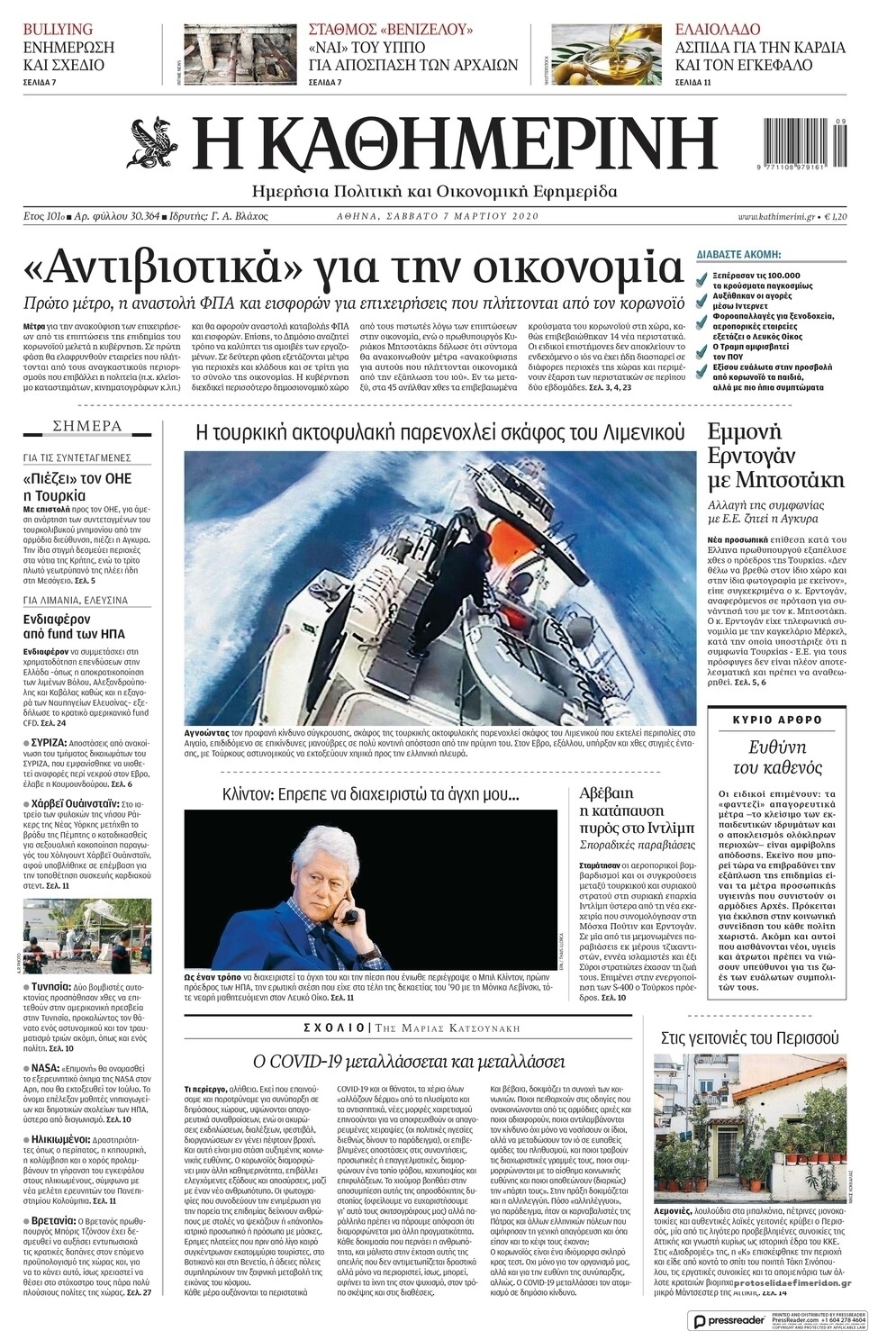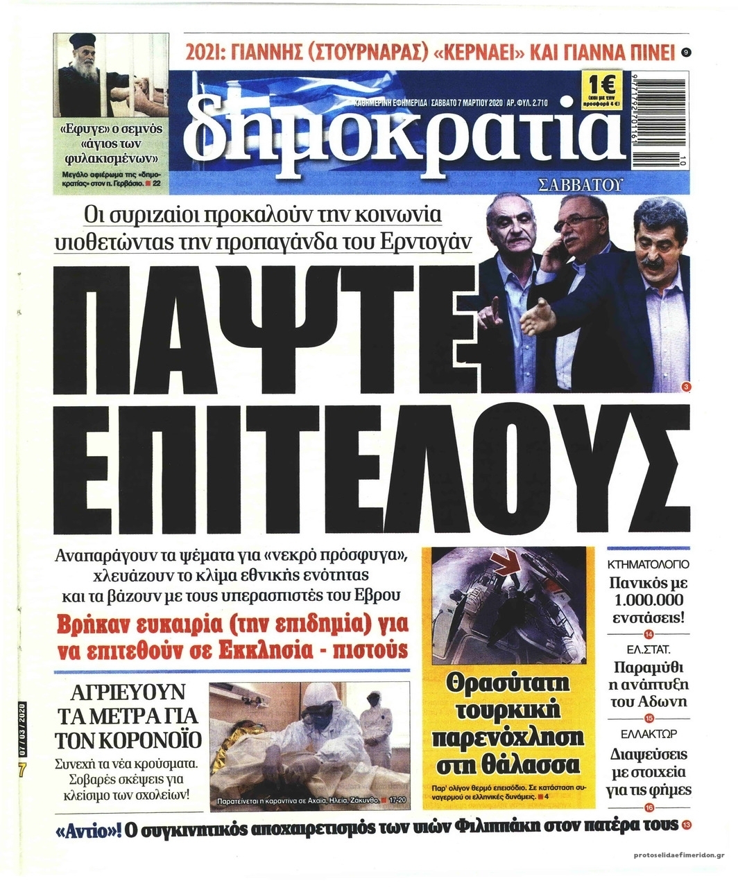 Διαβάστε όλα τα πρωτοσέλιδα των πολιτικών εφημερίδων του Σαββάτου 7 Μαρτίου. Πλήρης ενημέρωση με μια γρήγορη ματιά!