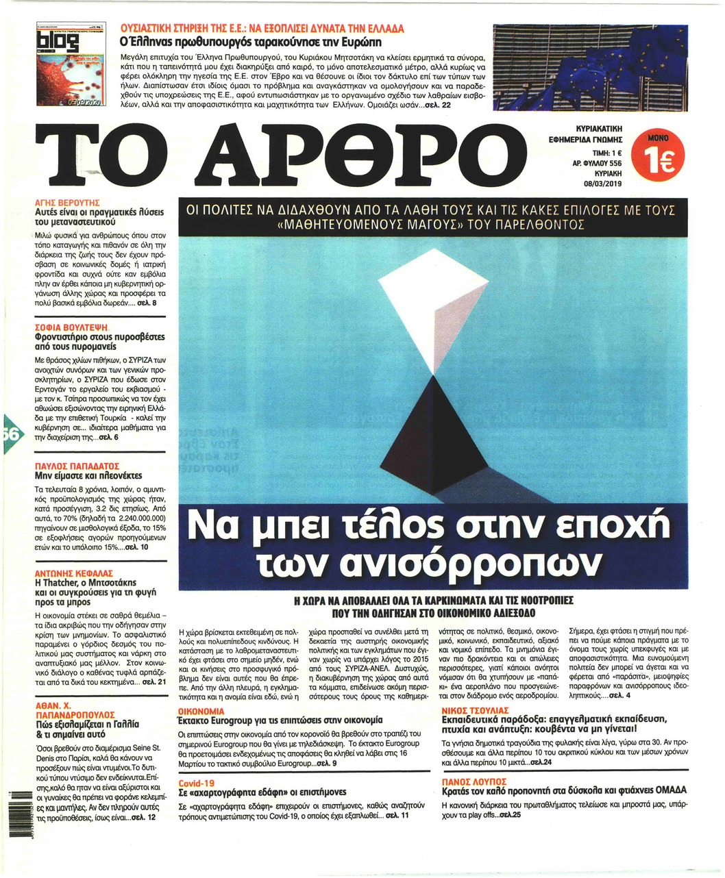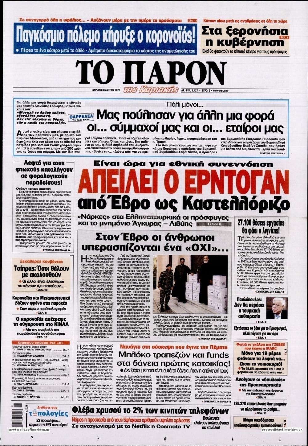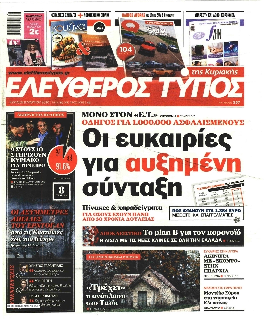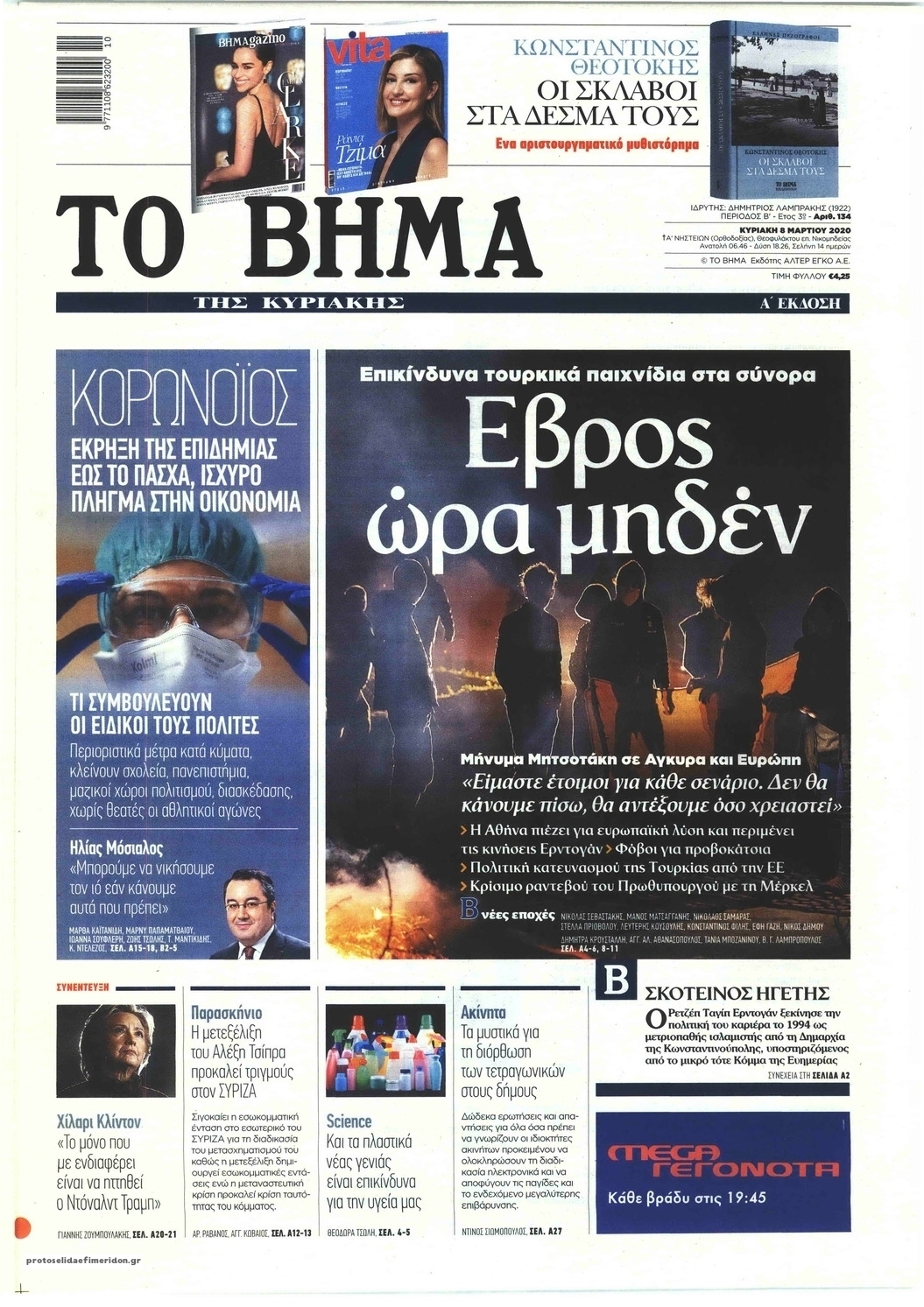 Διαβάστε όλα τα πρωτοσέλιδα των πολιτικών εφημερίδων της Κυριακής 8 Μαρτίου. Πλήρης ενημέρωση με μια γρήγορη ματιά!