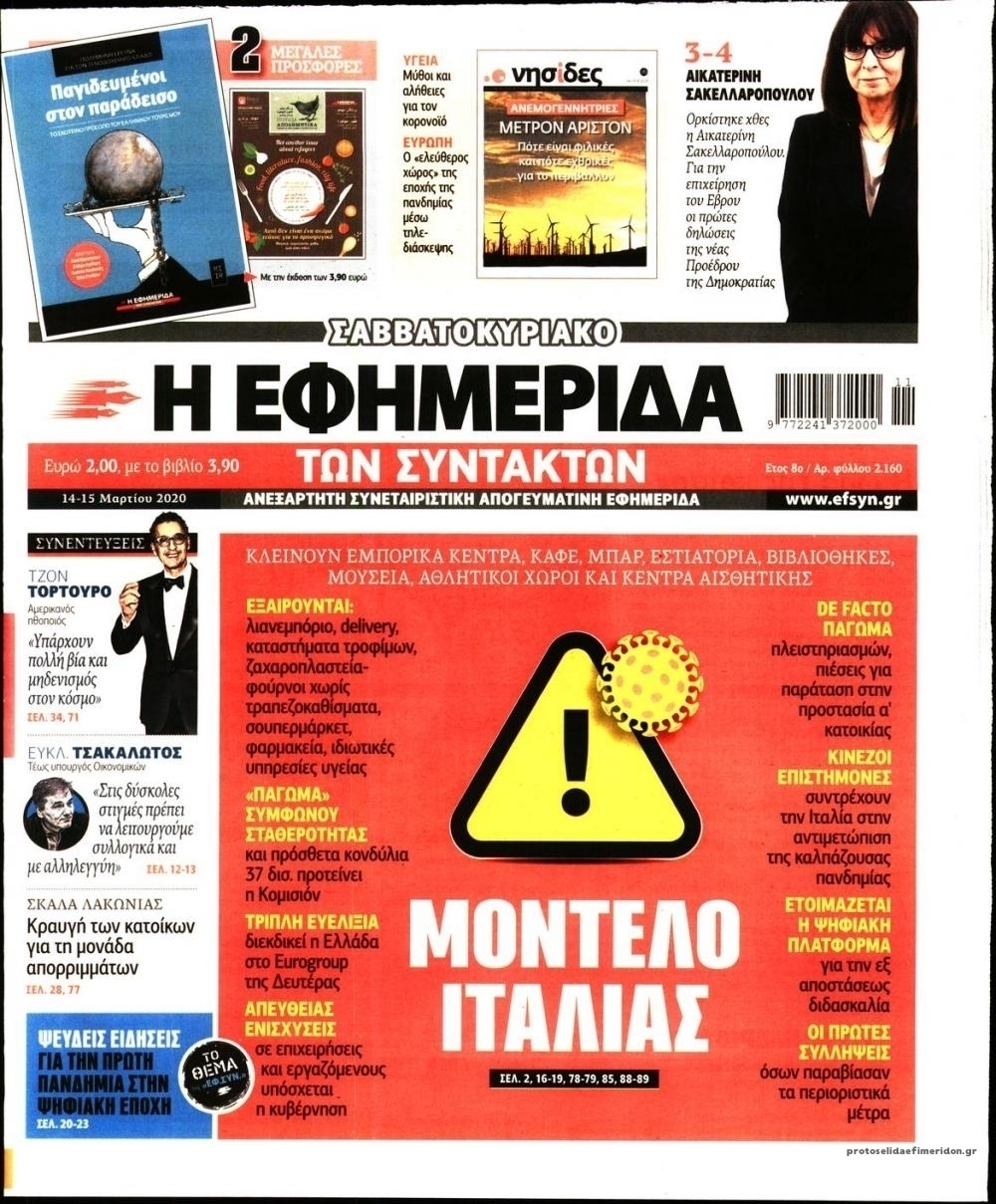 Διαβάστε όλα τα πρωτοσέλιδα των πολιτικών εφημερίδων του Σαββάτου 14 Μαρτίου. Πλήρης ενημέρωση με μια γρήγορη ματιά!