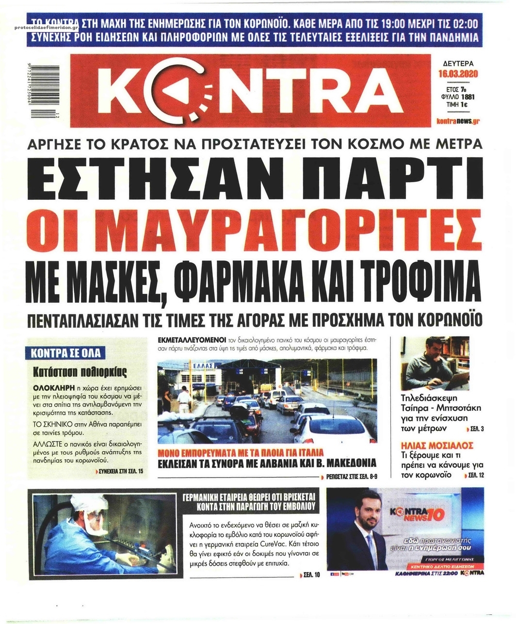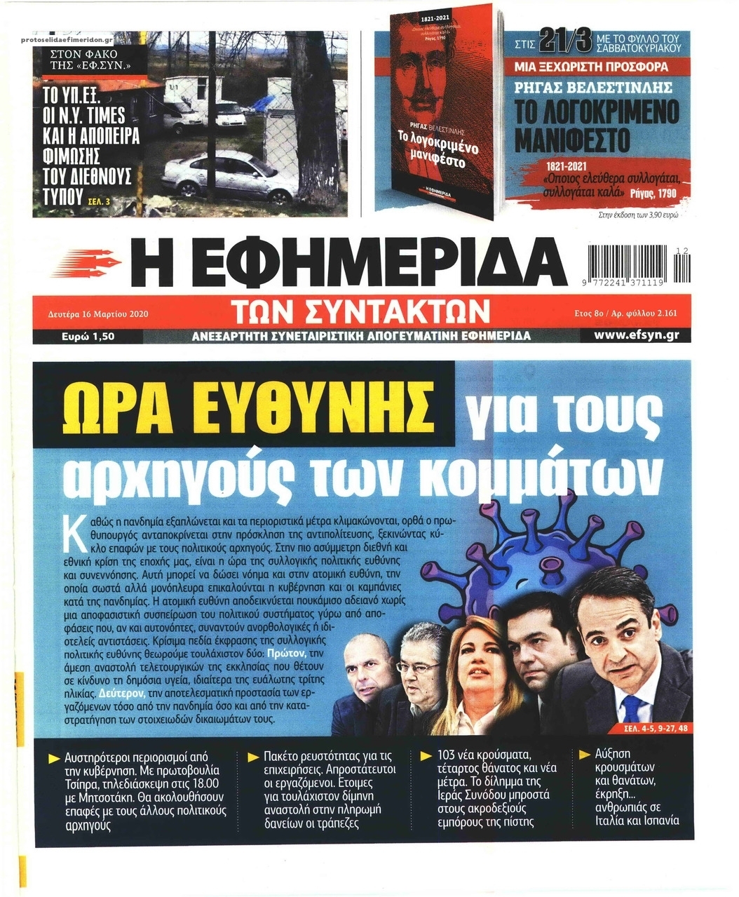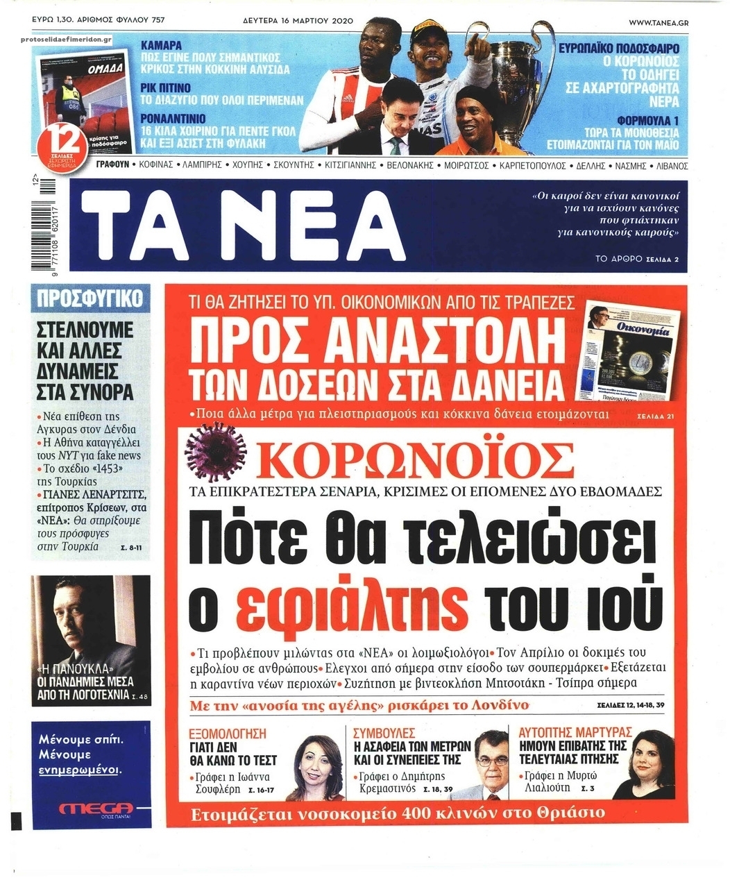 Διαβάστε όλα τα πρωτοσέλιδα των πολιτικών εφημερίδων της Δευτέρας 16 Μαρτίου. Πλήρης ενημέρωση με μια γρήγορη ματιά!
