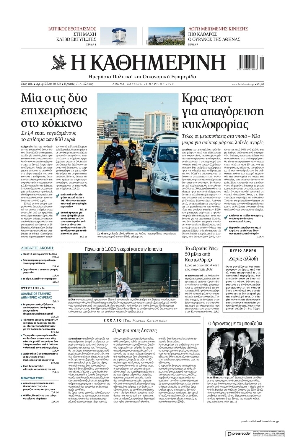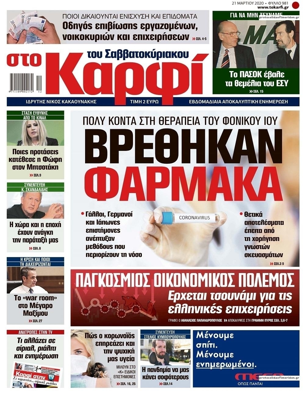Διαβάστε όλα τα πρωτοσέλιδα των πολιτικών εφημερίδων του Σαββάτου 21 Μαρτίου. Πλήρης ενημέρωση με μια γρήγορη ματιά!
