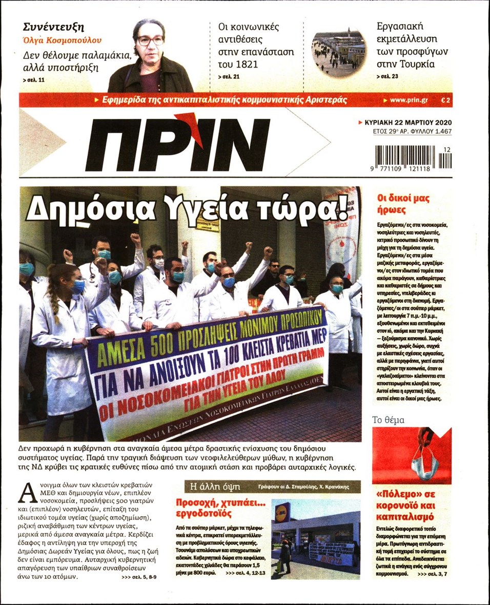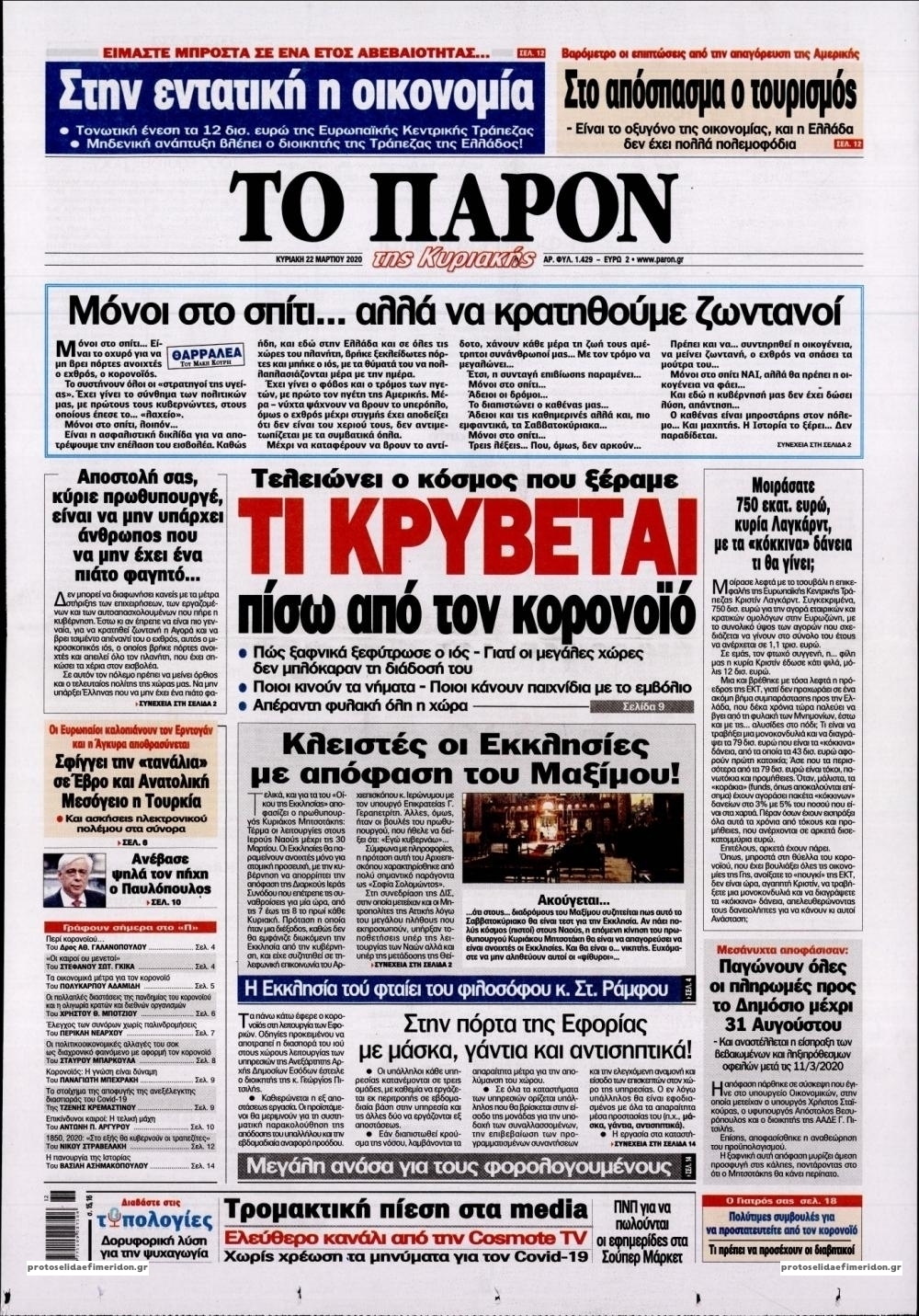 Διαβάστε όλα τα πρωτοσέλιδα των πολιτικών εφημερίδων της Κυριακής 22 Μαρτίου. Πλήρης ενημέρωση με μια γρήγορη ματιά!