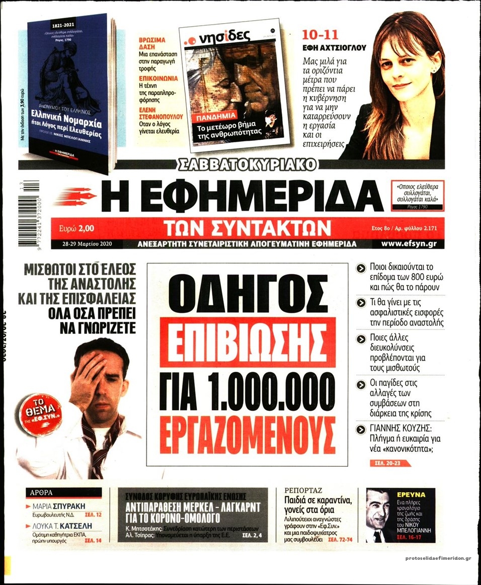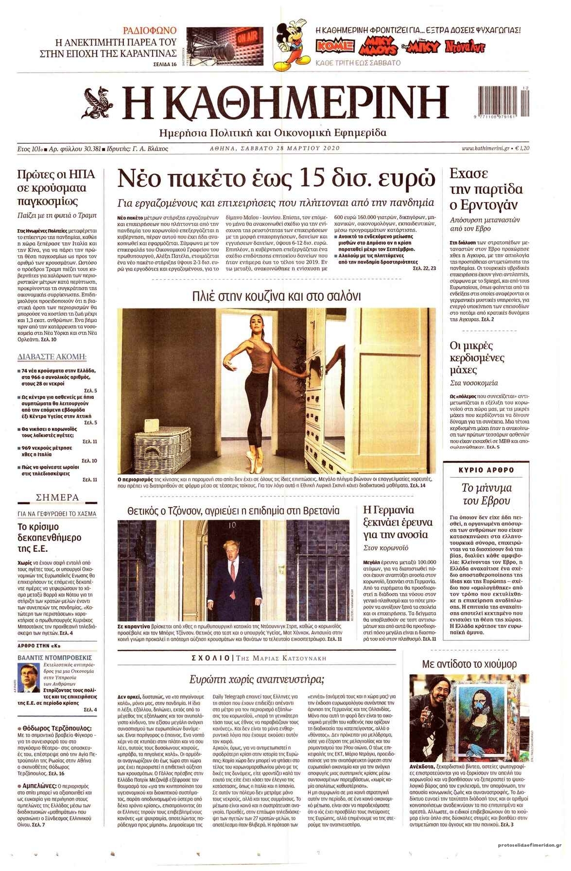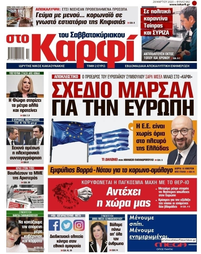 Διαβάστε όλα τα πρωτοσέλιδα των πολιτικών εφημερίδων του Σαββάτου 28 Μαρτίου. Πλήρης ενημέρωση με μια γρήγορη ματιά!