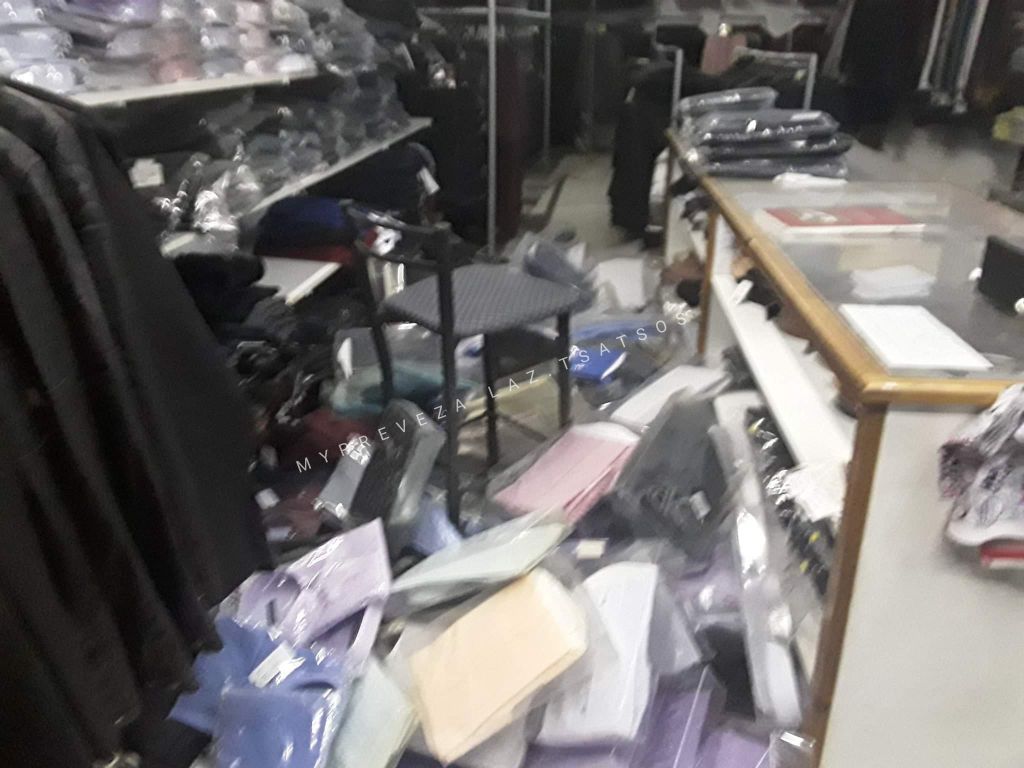 Οι πρώτες εικόνες από το Καναλλάκι δείχνουν το μέγεθος των ζημιών. Βιτρίνες καταστημάτων έχουν σπάσει, πράγματα πεσμένα από τα ράφια και δεκάδες άλλες ζημιές.